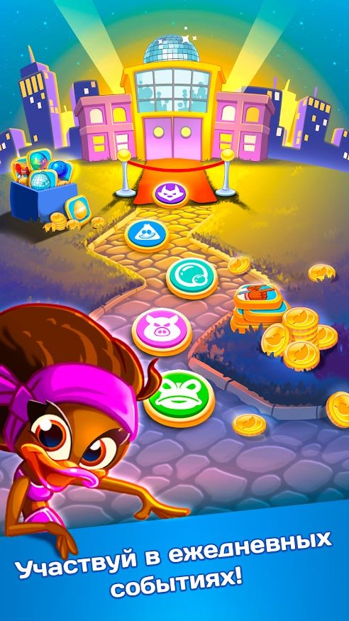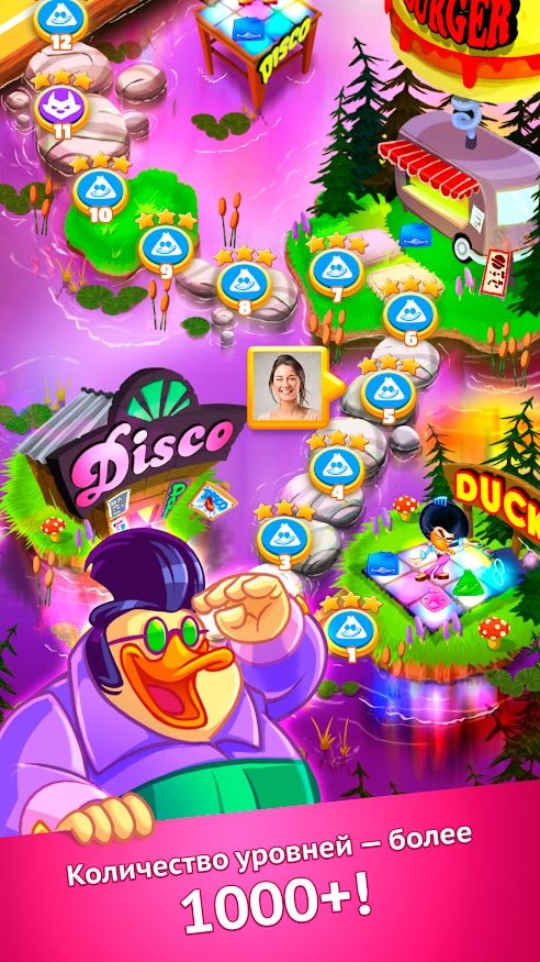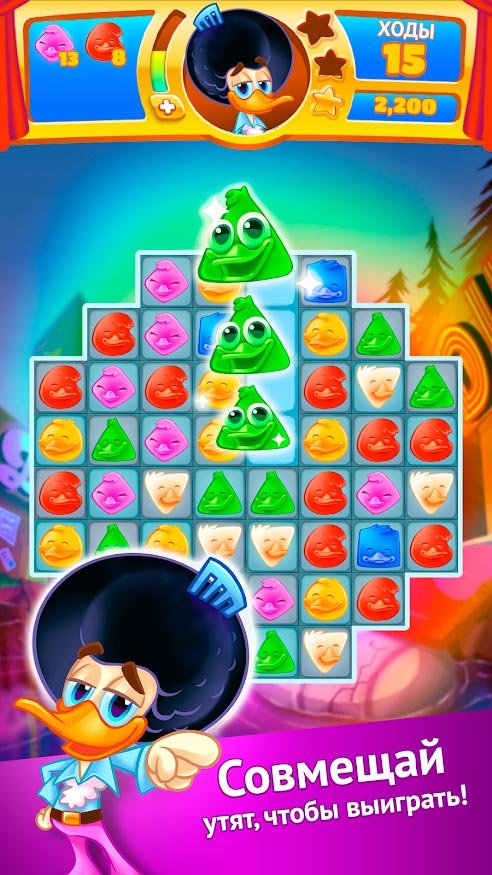 Простота и оригинальность головоломки три в ряд совместно с потрясающей графикой дарит радостные эмоции. Эти утки любят плясать и танцевать, но они выучили еще не все движения, поэтому изучать их вам предстоит вместе с ними. Больше сотни уровней доступно всем пользователям в Disco Ducks, а такая яркая и насыщенная анимация не даст оторваться. Играйте где угодно и во сколько захотите. Не требуется подключения к интернету, а значит головоломка и музыка доступна всегда. Обязательно пользуйтесь бонусными предметы, ведь с их помощью вы пройдете еще дальше и установите рекорд по прохождению уровня.
