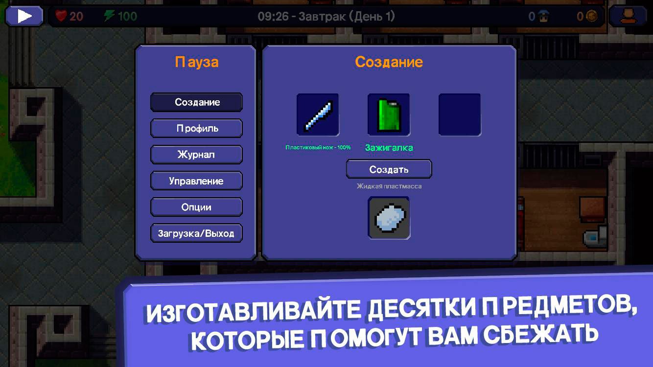 Уникальное приложение The Escapists позволит вам ощутить всю прелесть настоящей свободы. Воплотить дерзкий план побега будет не так-то просто, но это лишь усилит эффект от первого вздоха на воле. Не вызывайте подозрений у охранников, ищите лазейки в системе, планируйте все тщательно, и вы будете вознаграждены. Погружение в тюремную атмосферу увлечет с головой всех, кто ценит достойный азарт, когда на кону стоят лишь крупные ставки и остается сделать лишь верный шаг для получения желаемой свободы.