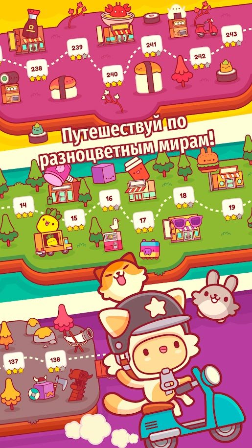 Сразу как вы станете участником этой милой головоломки, с элементами аркады, уже не сможете оторваться от прохождения невероятного количества уровней. Откройте себе мощную коллекцию из забавных и оригинальных персонажей и даже миленьких котиков. Управляйте своим ПИФЛИ и улучшайте его мир. Игроку предстоит вместе с этим героем пройти через разные волшебные миры и там побороться со злыми силами. Собирайте шарики и постарайтесь стать самым лучшим коллекционером.