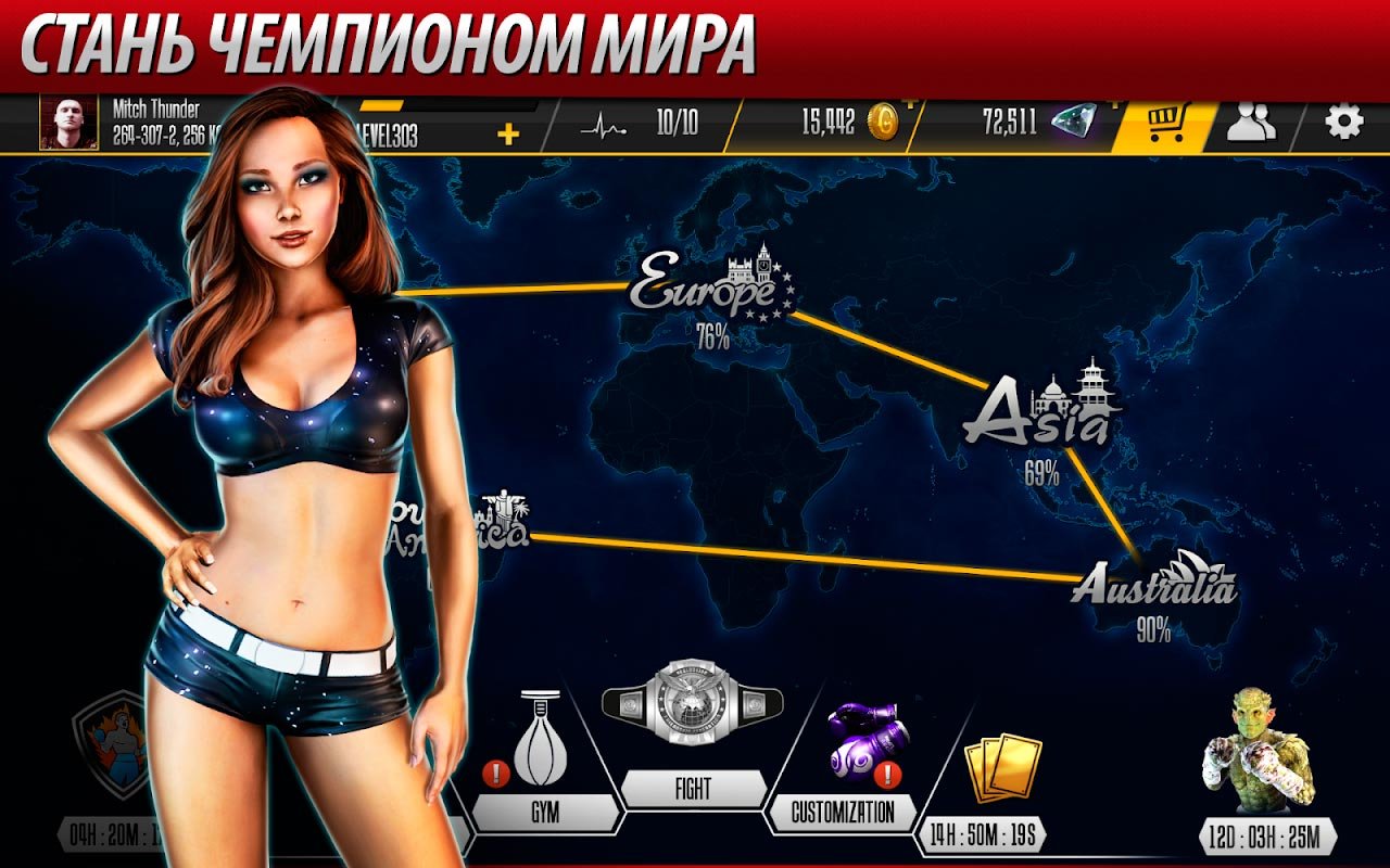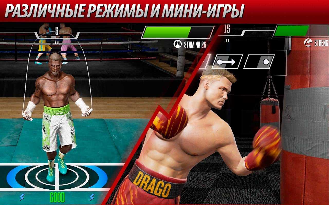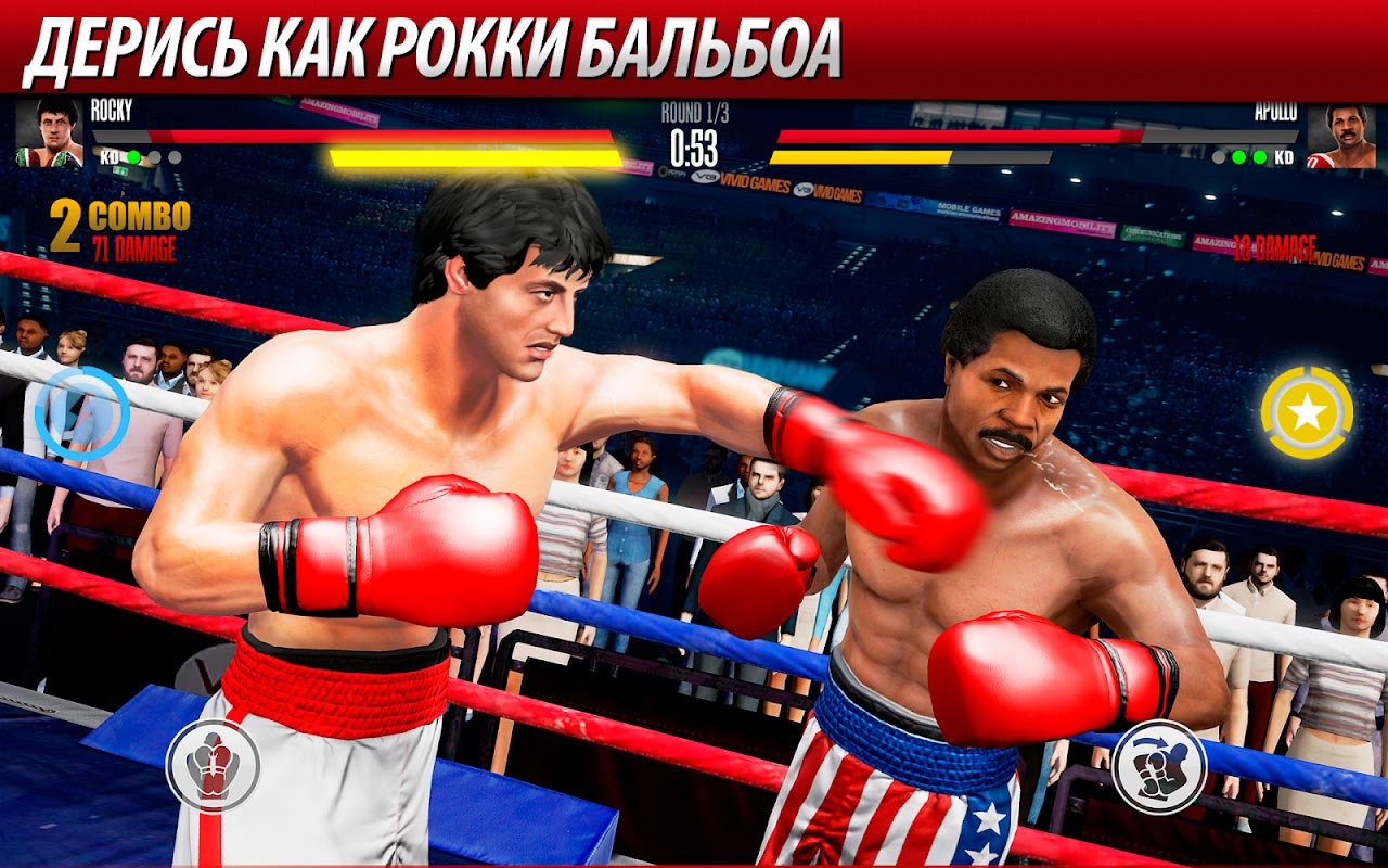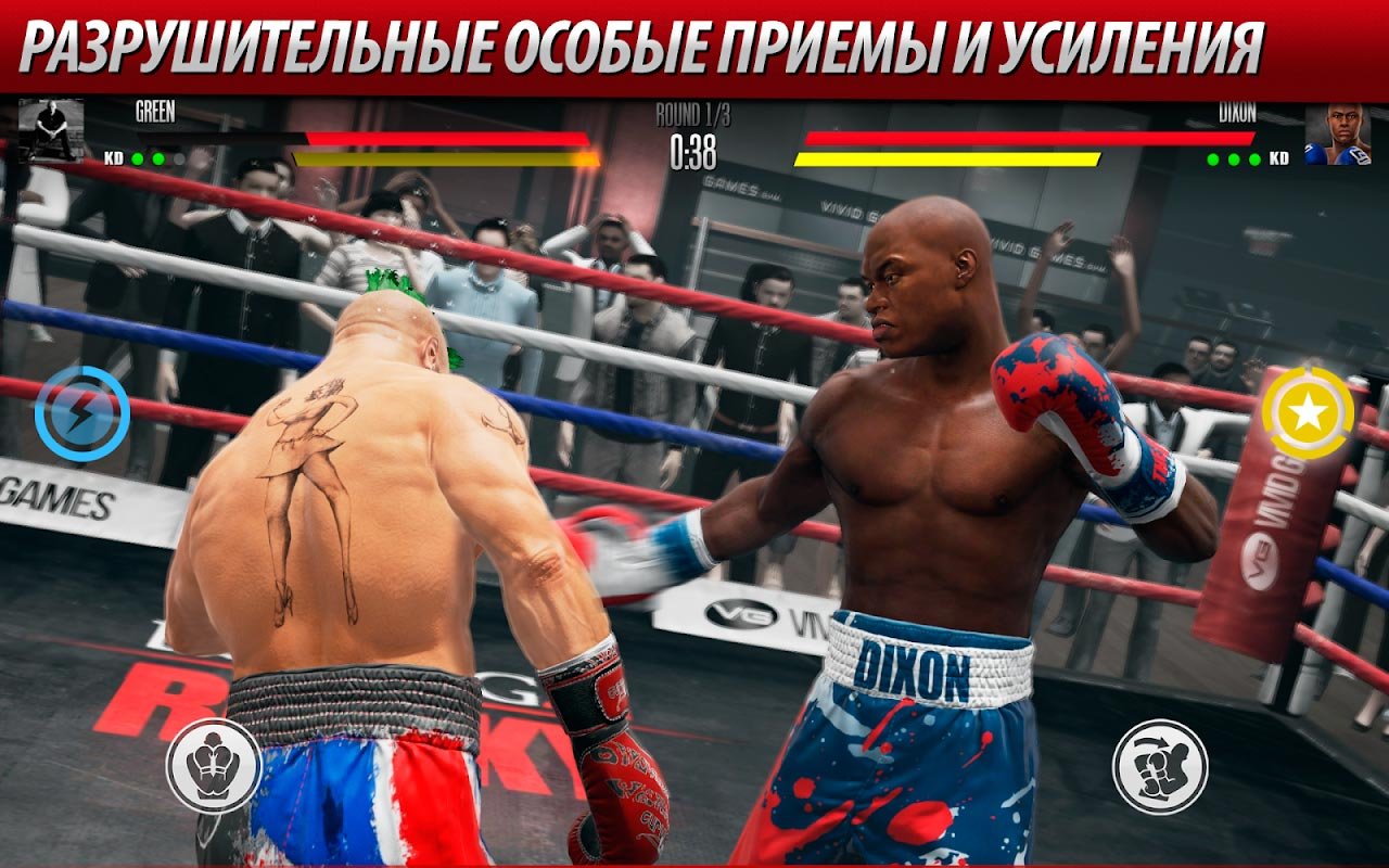 В процессе получайте адреналин от такой реалистичности трехмерной графики и современности физического движка. Научитесь выполнять мощные удары с левой и правой, а также апперкот. Подбирайтесь как можно ближе в Real Boxing 2 ROCKY к вершине карьерной лестнице и завладейте всеми чемпионскими поясами. Используйте персонализацию, чтобы изменить внешний вид своего бойца. Попробуйте проверить способности своего персонажа в режиме реального времени и сражайтесь с настоящими игроками, побеждая их. Настраивайте характеристики и прокачивайте уровень.