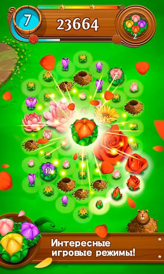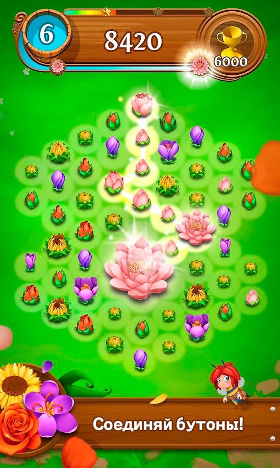 Огромное количество самых разных волшебных садов с цветочками предстоит пройти игрокам, чтобы в результате выращивать новые бутоны и, соединяя комбинации создавать потрясающие букеты. Очищайте огромное количество клумб в Blossom Blast Saga и продвигайтесь как можно дальше. Вам предстоит проделать очень длинный путь до успешных результатов. Просто собирайте три в ряд с одинакового цвета бутонами и получайте награды или открывайте достижения.