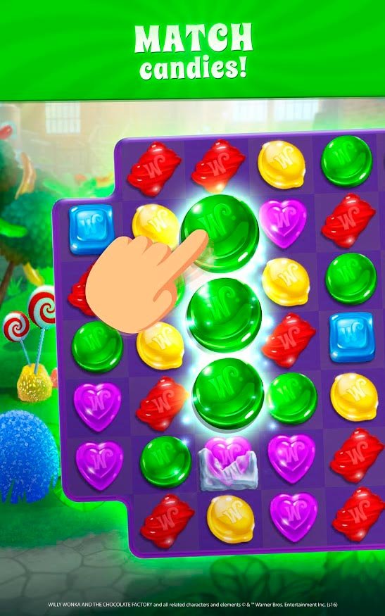 Огромная шоколадная фабрика теперь находится в руках умелого управляющего, который будет решать сотни головоломок и познакомиться с персонажами, влияющими на путешествие. Впереди будет ждать огромное количество уровней и заданий, с массой наград и удивительных призов. Путешествуйте по шоколадной фабрике и объединяйте сладкие предметы в комбинации из минимум трех в ряд, чтобы пройти как можно дальше в Wonka's World of Candy – Match 3. Вас ждут невероятное эффектные бонусные предметы, активируя которые, можно будет двигаться дальше и пройти весь завод. Забавляйтесь и наслаждайтесь этим весельем на протяжении множества этапов. Идеальное веселье для тех, кому все это понравится.