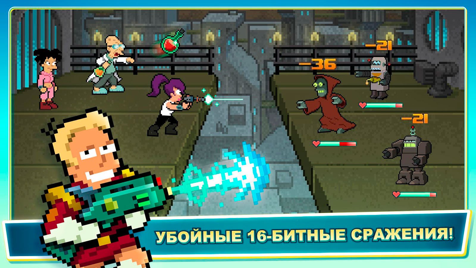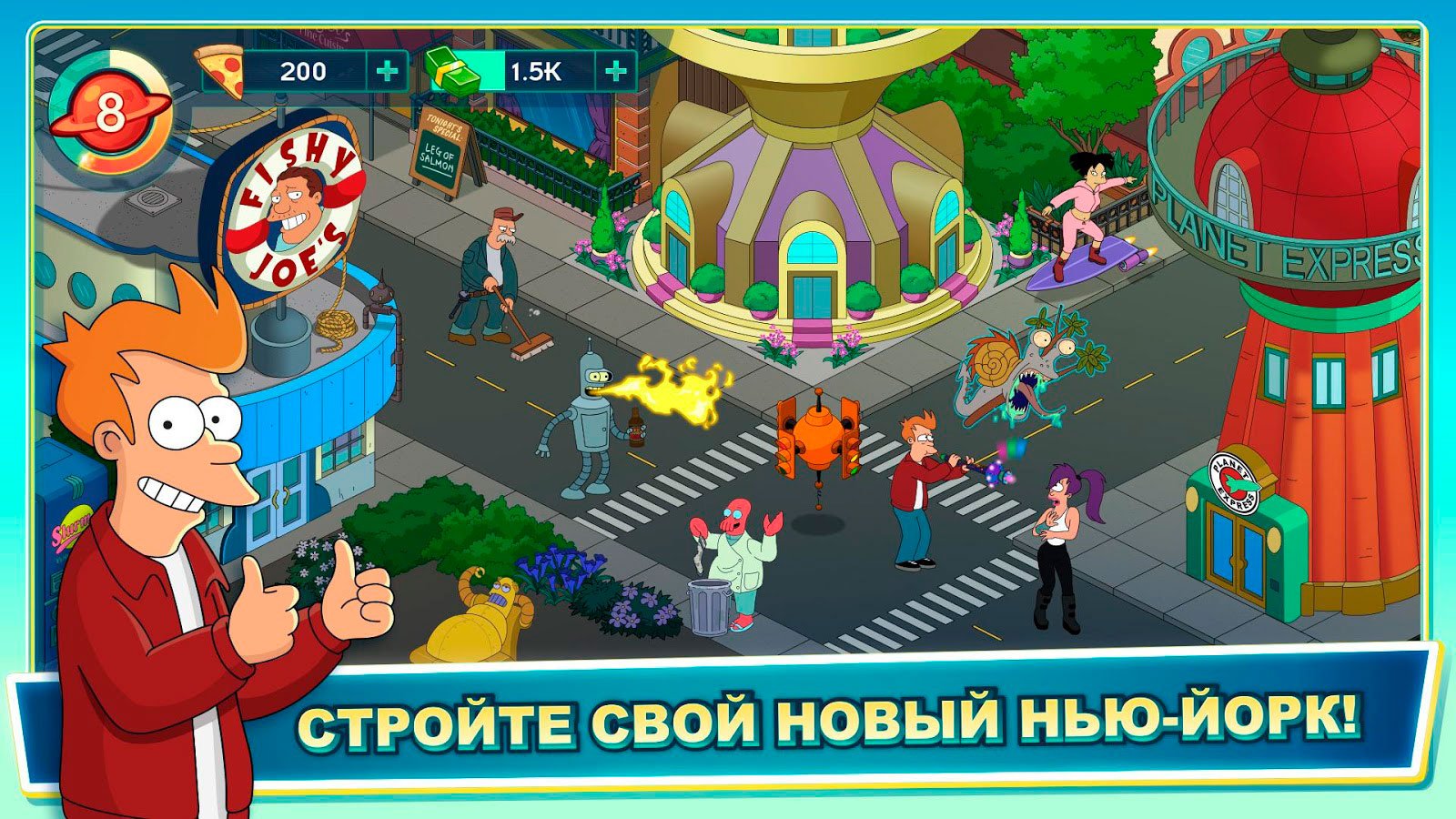 В игре полно веселья и занимательных особенностей. Так создателями веселого мультсериала удалось создать новую потрясающую историю о Футурама. Занимайтесь строительством нового Нью-Йорка и для этого иногда делайте очень важные решения, которые в корне могут изменить сюжетную линию и ход событий. Больше 16-ти эпических сражений в ходе этой истории, которые подарят веселье и наслаждение. Исследуйте и открывайте множество новых миров, на которых ждет встреча с новыми испытаниями и опасностями. Игрок сможет подбирать для своих героев новые костюмы, которые создадут неповторимый образ ваших любимых персонажей.Информация об игре