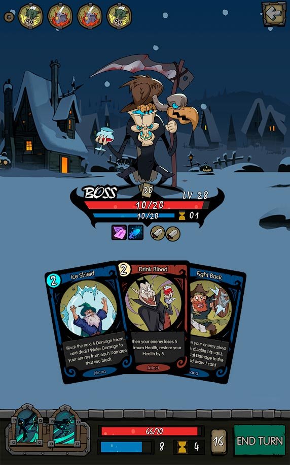 Огромная сюжетная компания, действия в которой происходят через автономный режим. Простейшая карточная битва, в которой может принять участие абсолютно каждый и он изучит основные правила карточных сражений. Получайте задания и участвуйте в битвах против боссов. Покажите, какие могут быть окончания игрового процесса. Главная героиня приключения красная шапочка и она любит путешествовать, а по пути в Night of the Full Moon ее ждут встречи с самыми разными мистическими и волшебными персонажами. Так предстоит сразиться с ведьмой, гномами, оборотнями и еще со многими другими. Эти сказочные жители лишь дополняют атмосферу и красоту игрового мира.