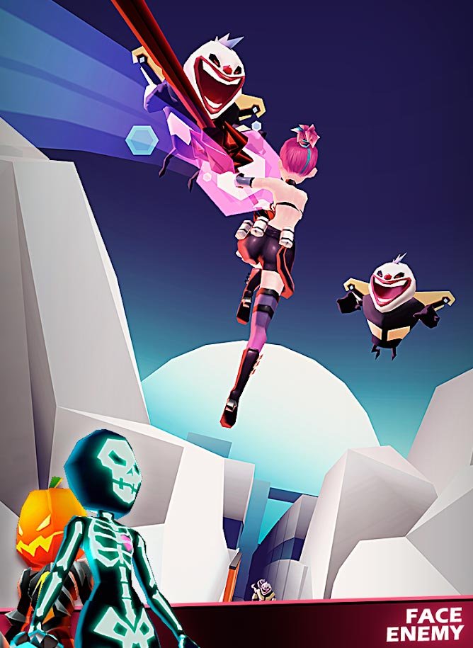 Джокерс взял контроль над этом огромным и фантастическим миром. С ним сражается только одна героиня, по имени Дорис и она будет готова дойти до самого конца, чтобы завершить эту войну и уничтожить маньяка. Эта девушка не борется за жизни остальных людей и е хочет спасти землю, в ее планах есть простое получение удовольствия от убийств и постоянного экстрима. Так она может действовать очень долго. Станьте участником Slash&Girl и испытайте себя в новинке, которая сделана в качественном стиле. В этом раннере и экшене нужно изучить огромное количество приемов и комбинаций. В процессе убивайте своих врагов и разрушайте все, что находится на пути. Погружайтесь в эти бои и получайте экстремальное удовольствие.Особенности игры
