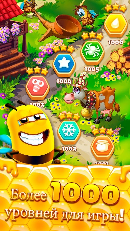 Игроку предстоит заняться исследованиями очень большого и веселого мира Пчеляндии, где сотни забавных пчелок трудятся постоянно и не устают добывать мед. Вместе с ними этими делами будет заниматься и пользователь, а это очень увлекательно. Больше десятков разных персонажей из мира насекомых. Полностью бесплатный игровой процесс ждет вас и в нем полно ярких моментов. Bee Brilliant позволяет решить тысячи уровней и получить бонусы, за составление комбинаций. Это лишь увеличит веселье и удовольствие. Подключайтесь к приключениям прямо сейчас и попытайтесь помочь пчелкам. Нет ничего сложного, просто познакомьтесь со сказочным миром и его оригинальными правилами. Используйте пчел и составляйте одноцветные комбинации, чтобы выиграть бонус.