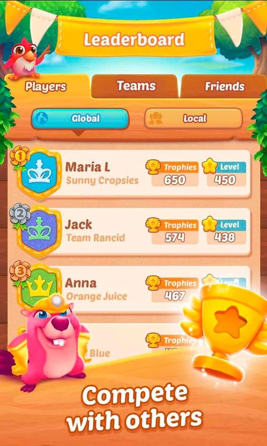 Примите участие в самой невероятное головоломке по типу три в ряд и получайте удовольствие. Устройте самые захватывающие соревнования между игроками по глобальному рейтингу. Миллионы пользователей будут вскоре участвовать здесь, но вы можете стать одним из них быстрее. Собирайте комбинации и линии минимум из трех в ряд героев, чтобы пройти как можно дальше. Можете даже бросить вызов своим друзьям и сразиться с ними в режиме соло. Выигрывайте награды и достижения, становясь с каждым разом еще лучше. Каждый очередной уровень будет более динамичным, чем прежний. Все, у кого появится Farm Heroes Champions, будут в восторге от участия в головоломках. Прогрессируйте и набирайте к себе в коллекцию все больше персонажей, проходя более сотни уровней и десятка глав.Особенности игры