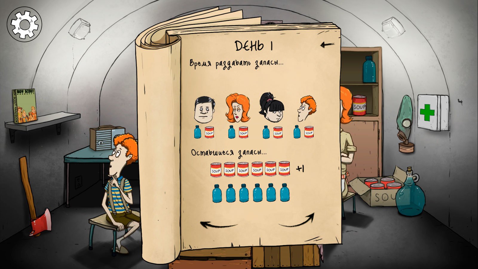 С этого и начинается все самое интересно в игре 60 Seconds! Atomic Adventure. У вас всего 60 секунд на то, чтобы собрать всех членов семьи вместе и приготовить запасы. Что именно взять и в каком количестве – именно этими вопросами вы будете задаваться в оставшиеся секунды перед тем, как всем семейством отправитесь выживать в одинокий и холодный мир игры. Разрабатывайте свои стратегии, пробуйте новые способы, комбинируйте варианты – всячески пытайтесь дойти до конца этой истории и надейтесь, что он будет позитивный. Все здесь зависит только от ваших решений.