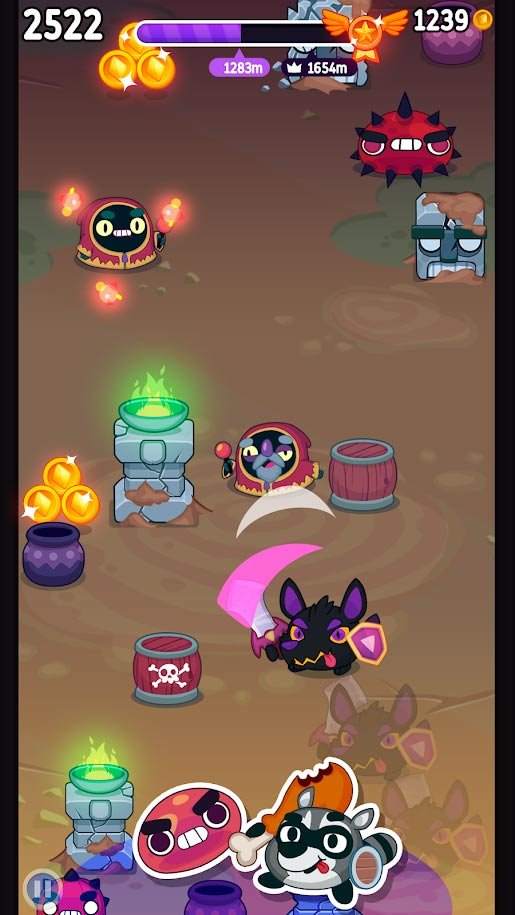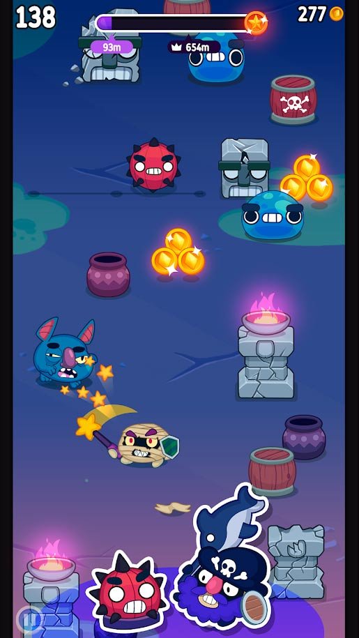 Как же много в этом виртуальном мире самых разнообразных ловушек и все они по-своему уникальны и сложны. Вам же, как действующему герою, предстоит разобраться с ними, как и с монстрами, что участвуют в этих уровнях. Простейшими кликами нажимайте на экран и убивайте монстров, которые будут выглядывать на локацию. Делайте свои удары как можно более быстрыми, чтобы попадать с невероятной точностью и успевать вовремя. Открывайте в процессе сотни вооружения и используйте его для решения проблем. К тому же в игре полно персонажей, которые станут героями и с их характеристиками нужно познакомиться. Бесконечное веселье ждет каждого, и оторваться от этого, будет реально сложно.Особенности игры Sling Smash