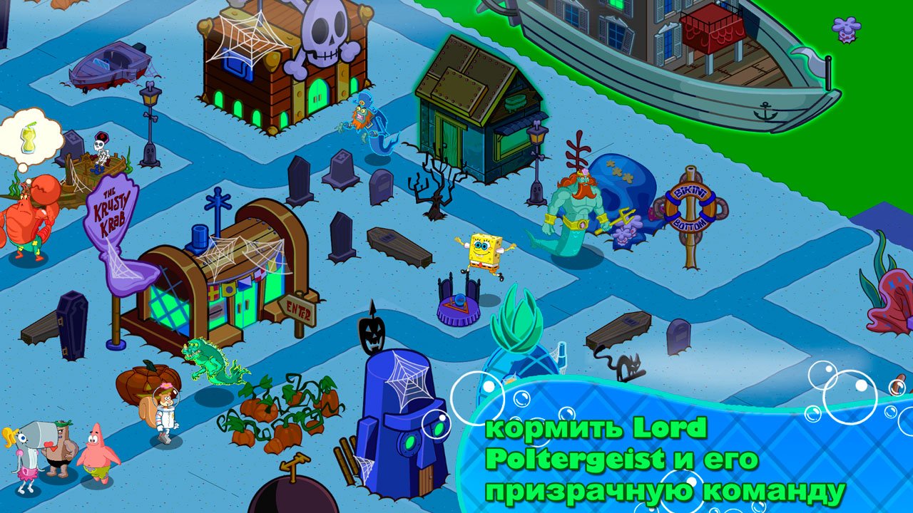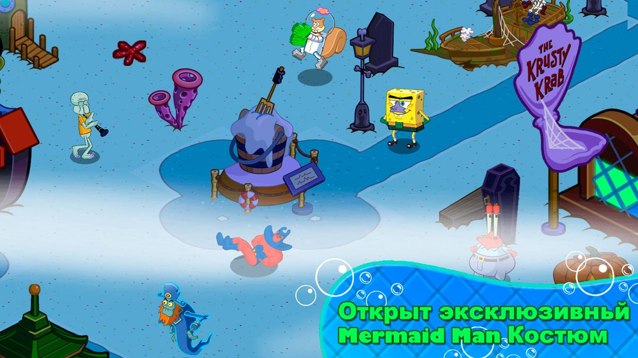 Игрок сможет создавать самые крутые достопримечательности Бикини Ботома в виде Скалы, где поселится вскоре Патрик и других зданий. Постоянно совершенствуйте свое мастерство в приготовлении бургеров и кормите приходящих подводных клиентов. Иногда у вас получится узнать более новые рецепты. Познакомьтесь со своим коллегой, вечно недовольным Сквидвардом. Игрока ждет огромное количество увлекательных квестов, которые должен пройти каждый из существующих персонажей. Украшайте все здания и улочки, добиваясь высот в этом интересном игровом процессе, сделанном по мультику.