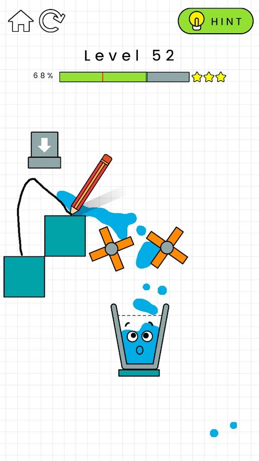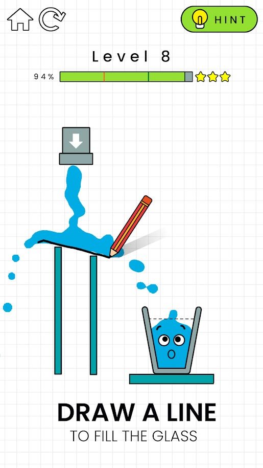 Happy Glass – это знаменитая головоломка, с которой вы сможете хорошо натренировать свое логическое мышление и некоторые другие способности. Здесь нужно просто касаться экрана и рисовать линии так, чтобы наполнить жидкостью стакан. От движения вашего пальца будет зависеть направление потока жидкости – понять принцип очень просто, так что справится с игрой даже ребенок. Сотни увлекательных уровней ждут всех любителей хороших головоломок.