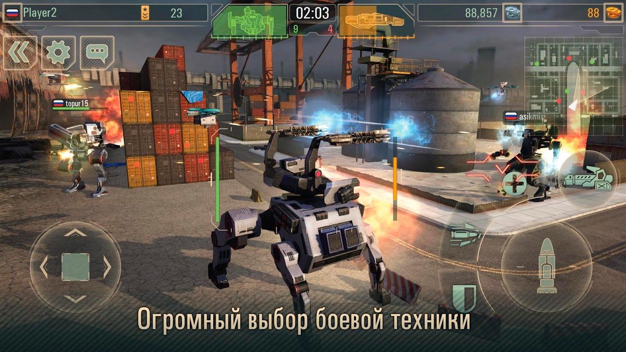 - Динамичные поединки между сотнями роботов.
