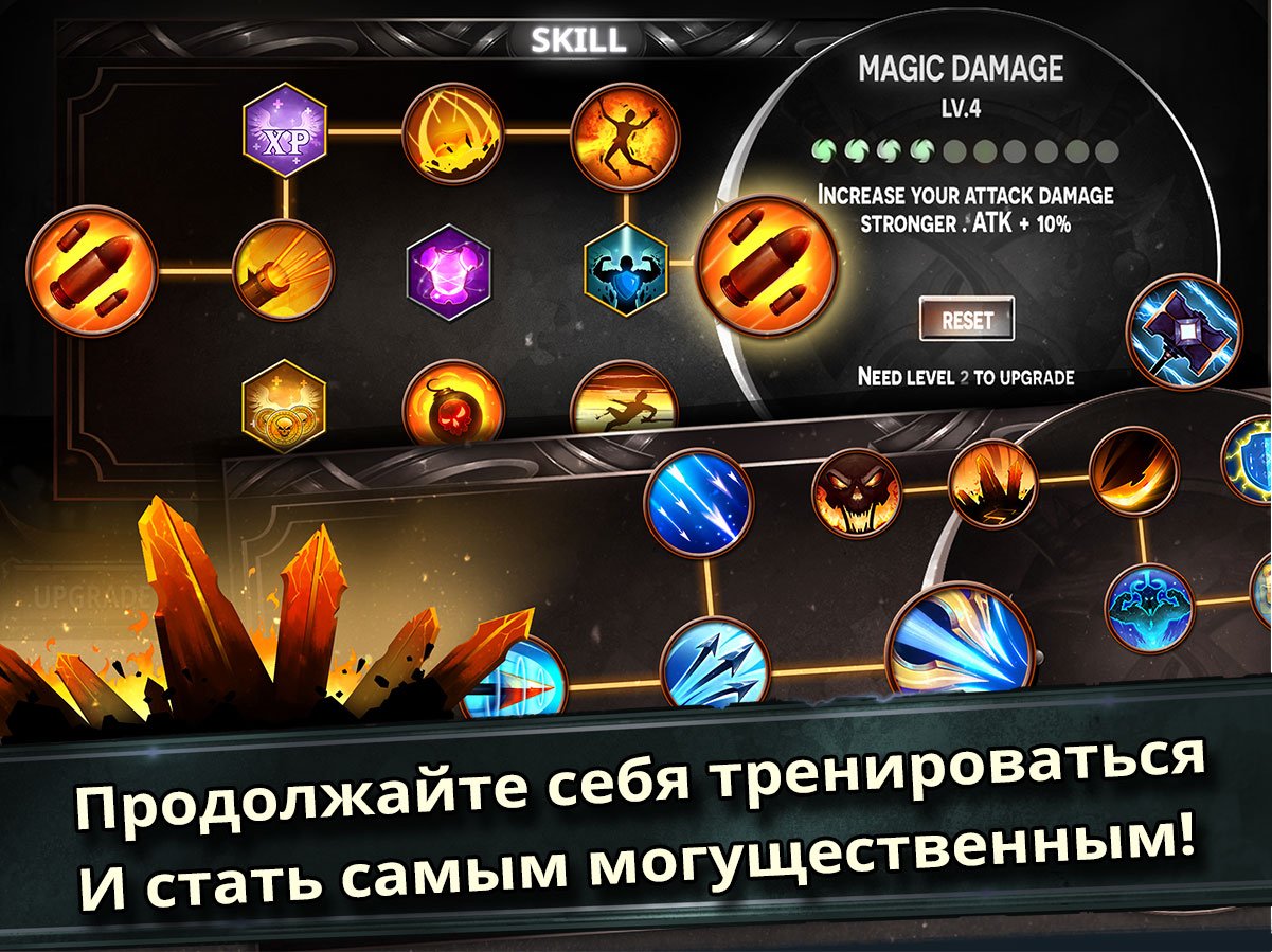 Обратите весь свой гнев на вражеское ополчение и заработайте массу наград и трофеев. Больше двадцати навыков уже доступно для освоения и прокачки. В них входят не только боевые и стрелковые умения, но и силы волшебства и магии. Игроку понадобится своя уникальная стратегия, чтобы выигрывать все уровни. Действуйте не просто жестоко, но и очень мудро. Участвуйте в гонке за рейтинг и поднимайтесь как можно выше, чтобы стать лучшим во всем мире. Приглашайте друзей и проводите соревнования за звание лучшего героя. Тысячи крутых обновлений и модернизаций для оружия и умений будут доступны игроку. Проведите своего Стикмена через огромную историю, полную монстров и напряженных поединков.