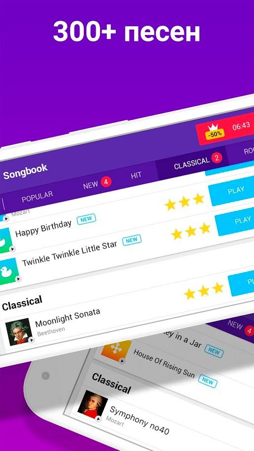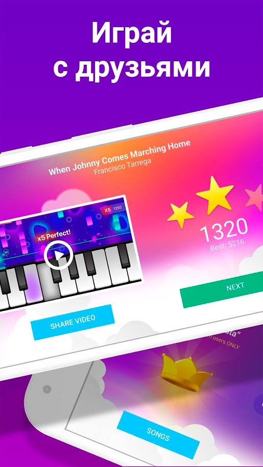 Наверняка каждому иногда хотелось попробовать ощутить себя в роли настоящего пианиста, но возможности для этого не было. Теперь же благодаря такому реалистичному приложению стало возможность попробовать воспроизвести сотни потрясающих музыкальных композиции. Просто кликайте по клавишам и пользуйтесь подсказками, если до этого момента были далеки от фортепиано. В Piano - Пианино Игра собрано больше трех сотен оригинальных и эксклюзивных композиций, многие из них уже давно стали популярными. Вы можете свободно выбирать любой жанр и категорию, а после воспроизводить хиты легкими движениями пальцев. Уникальное звучание каждой клавиши передает атмосферу и позволяет экспериментировать и сочинять новые треки.