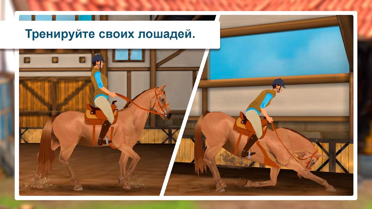 - Весь процесс ухаживания за лошадьми как за реальными;
