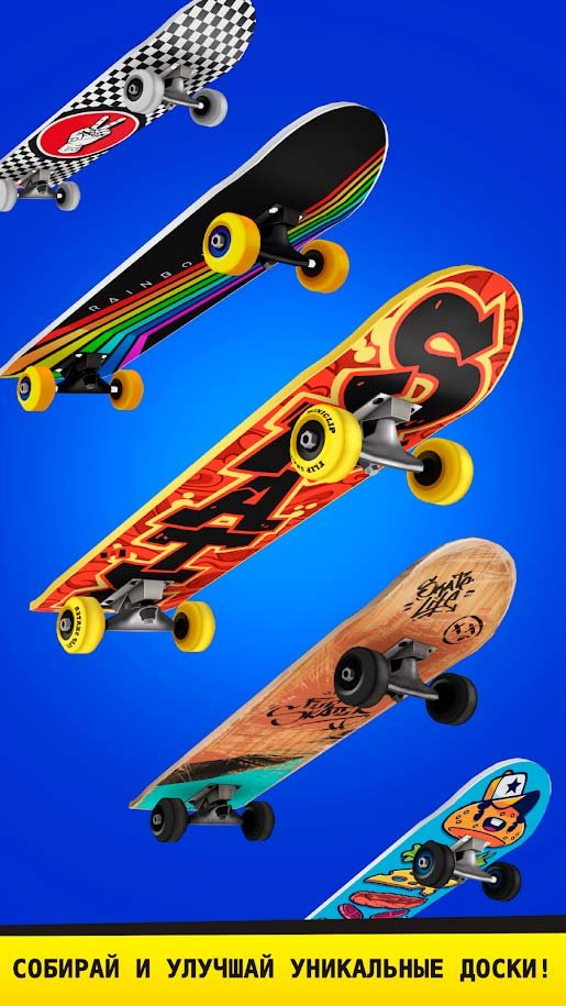 - Десятки видов досок для скейтбординга;