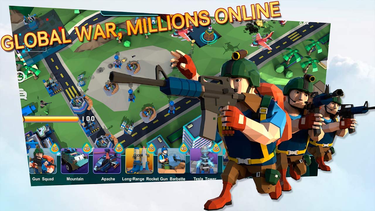 Как только вы станете участником этого масштабного мобильного приключения, получите возможность создать свой собственный легион из воинов и примите участие в битвах режима реального времени. Подключайте к этому процессу своих друзей и уже вместе поборитесь за место лидера. Станьте опытным командиром и не упускайте из вида всех действий от соперников. Используйте множество юнитов, танков или даже летательными аппаратами. Вам предстоит почувствовать мощь Commander At War- Battle With Friends Online! Контролируйте абсолютно все действия и подразделения своей армии. На данный момент эта войнушка предлагает больше пяти десятков видов военных юнитов. Смело вызывайте на поединки собственных друзей и сражайтесь с ними, пока не захватите весь мир.Особенности игры