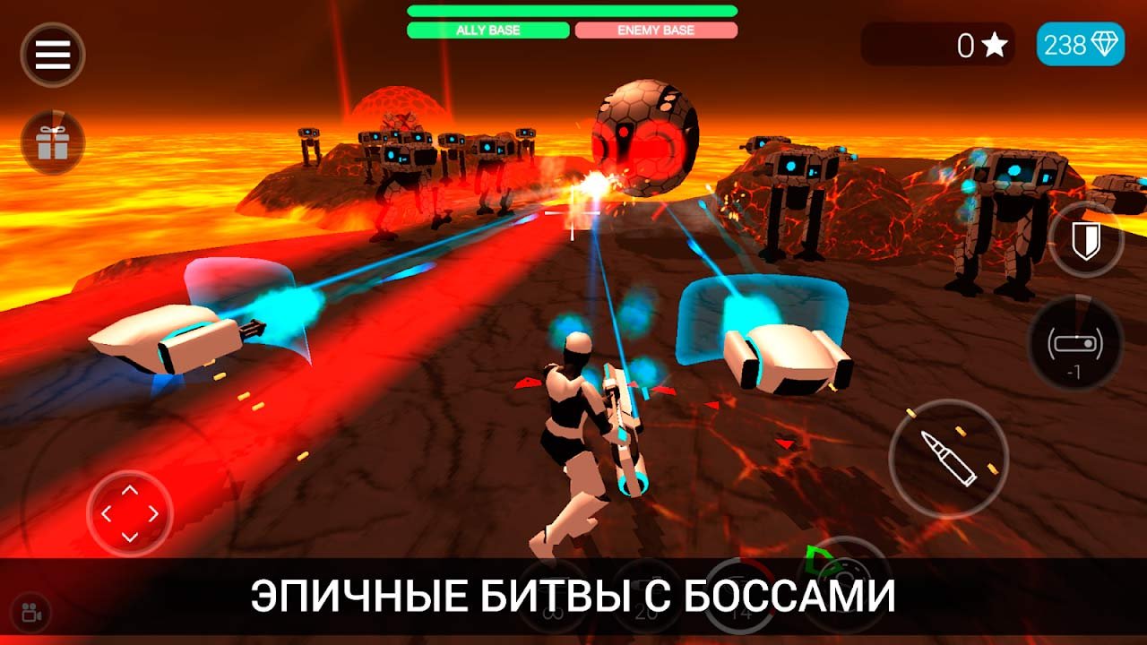 У вас есть совсем немного времени для того, чтобы передать все имеющиеся данные на главную базу и тем самым завершить спасательную операцию. Игрок должен будет выступить в роли боевого мощного дрона из будущего и победить врагов. у вас есть база и она постоянно требует защиты, которую робот и будет обеспечивать. В CyberSphere: Фантастический шутер от 3 лица нельзя позволять врагам приблизиться к штабу и украсть данные, а для этого придется сделать все невозможное. Можете пригласить в этот игровой процесс друзей и уже вместе с ними создать команду. превосходная трехмерная графика и визуальные фантастические эффекты позволяют долго наслаждаться игровым процессом.Особенности игры