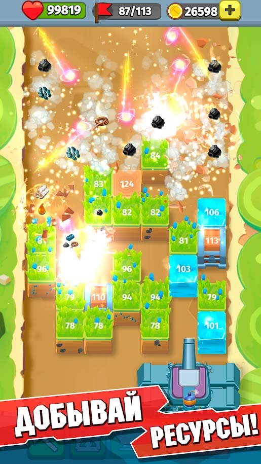 Очень оригинальные приключения ждут игроков впереди этой аркады. Берите под управление маленький танк и путешествуйте по пещерам и другим местам вселенной. По пути уничтожайте огромное количество блоков и собирайте ресурсы для своей коллекции. Не обошлось в этом игровом процессе без крафтинга, поэтому каждый игрок может здесь попробовать улучшить систему вооружения танка и в целом его внешний образ. Множество бесконечных режимов игры, в которых можно получить титул легенды. Главное по пути не пропустить ни одного блока и продвигаться как можно дальше. За успех в Mining GunZ: стреляй, разрушай блоки и плавь руду вам дадут награды и откроют достижения, а также есть большая конкуренция среди других игроков.Особенности игры