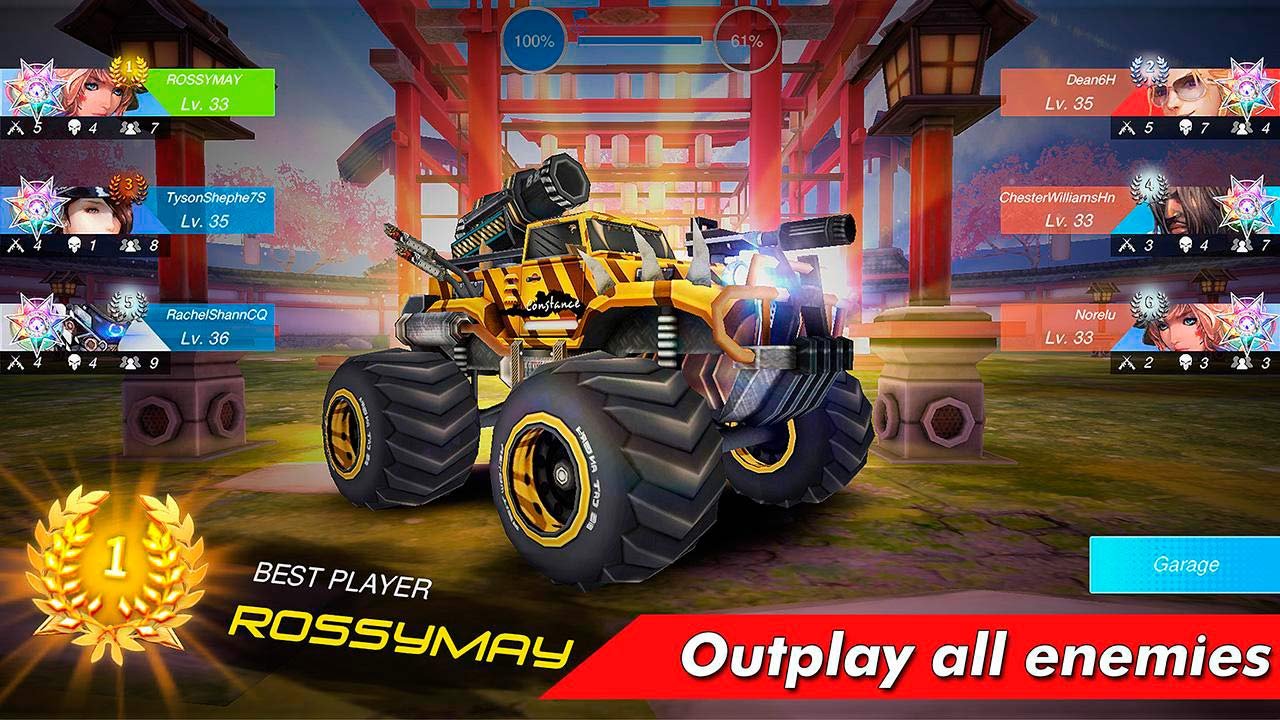 Сразу же приглашайте своих друзей и подключайтесь к коллективной игре, чтобы наслаждаться сражениями в режиме реального времени. В процессе игроки получат массу удовольствия и испытают напряжение. Включайтесь в гоночные сражения и собирайте множество видов вооружения. Вам предстоит пройти сложнейшие испытания и в это время оснащаться свой транспорт массой видов пушек или брони. Кроме многопользовательских гонок в Cars Battle Royal: Overload есть возможность пройти режим карьеры и попробовать добиться лучших результатов. В ней вам предстоит оказаться в мире полного хаоса и безумия, чтобы сражаться против воинов террористической компании под наименованием МОТа.Особенности игры