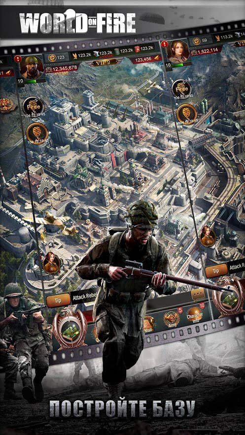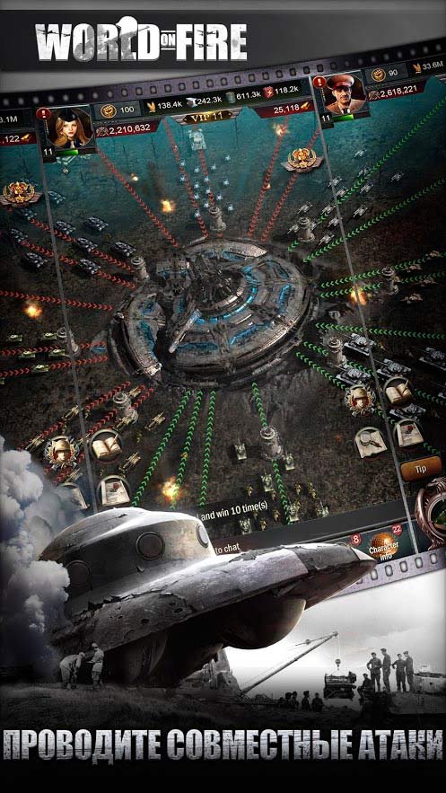 После того, как дождь из метеоритов упал на Землю, он разрушил практически все и превратил целые города в груды пепла и дыма. Игроку нужно будет поднять свою собственную военную базу и собрать ее заново, чтобы сделать эффективной. Именно на ней будут ежедневно производиться новые единицы армии и техники. Отправляйте своих солдат на эту войну и попытайтесь отвоевать еще больше ресурсов. В процессе продвижения в World on Fire можно будет узнать о существовании новых технологий и исследовать мир. Познакомьтесь с другими игроками и создайте вместе целый союз. Тогда воевать будет намного проще, и вы с легкостью разобьете своих врагов. Выживайте, развивайтесь, улучшайтесь и добивайтесь легендарных наград.Особенности игры World on Fire