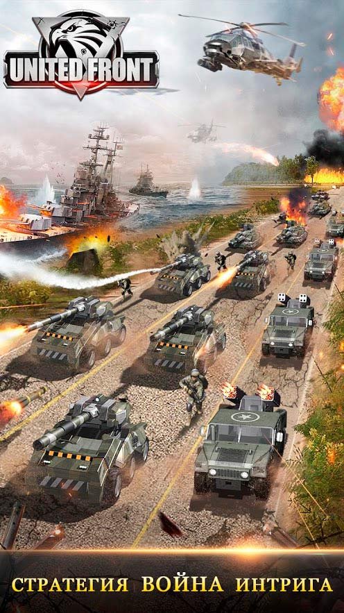 Начните с того, что сможете построить свою собственную военную базу и укрепляйте ее, чтобы сделать эффективной. Наймите в свою компанию огромное количество воинов и единиц, чтобы потом сражаться. Присоединяйтесь к своим друзьям и создавайте кланы. Стремитесь захватить весь этот огромный мир и завоевать власть. Присоединяйтесь к союзникам и сражайтесь против миллионов игроков. Есть десятки разнообразных видов воинов, которые пойдут войной. Увеличивайте мощь и наращивайте территории. В United Front каждый может стать крутым полководцем и использовать разные категории армий. Наслаждайтесь классной графикой и изображением. Ваш авианосец должен будет разгромить всех оппонентов и выбиться в списки самых лучших истории.