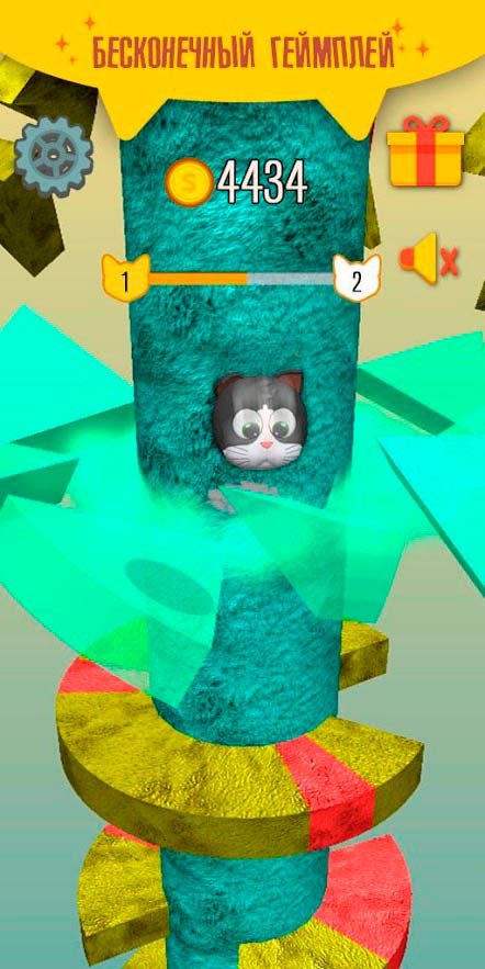 Игроков ждут невероятно веселые аркадные приключения вместе с любимыми котиками, которых здесь очень много и каждый по-разному выглядит. Путешествуйте по более чем сотне оригинальных и веселых уровней, а по пути собирайте множество котят. У вас может появиться коллекция из более чем 3-х десятков оригинальных персонажей, а каждый обладает своими характеристиками и способностями, которые помогут облегчить процесс. Обязательно позовите в Helix Cat своих друзей, чтобы вместе с ними соревноваться и конкурировать. Постарайтесь набрать как можно больше очков, чтобы пройти дальше и стать лидером в списке. У каждого героя можно провести эволюцию и улучшить его величие. Благодаря такому жанру пользователи расслабятся и снимут стресс.Особенности игры