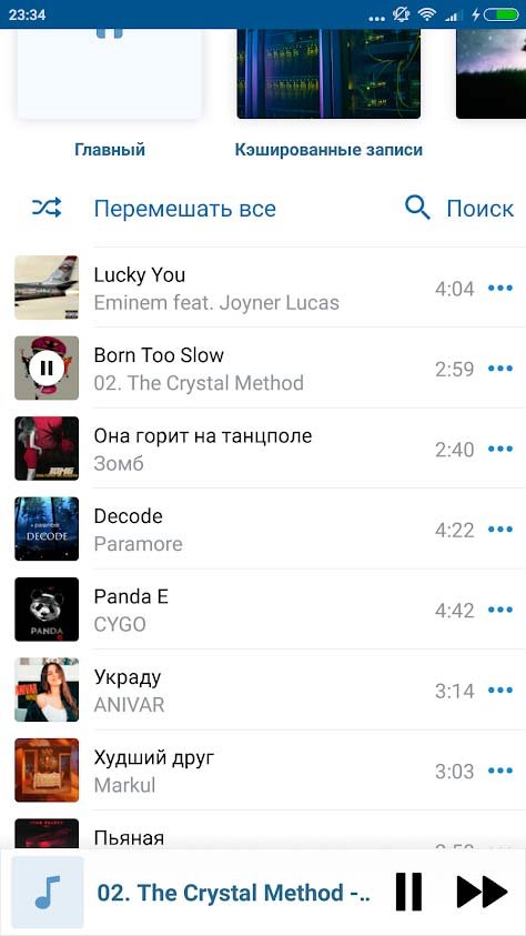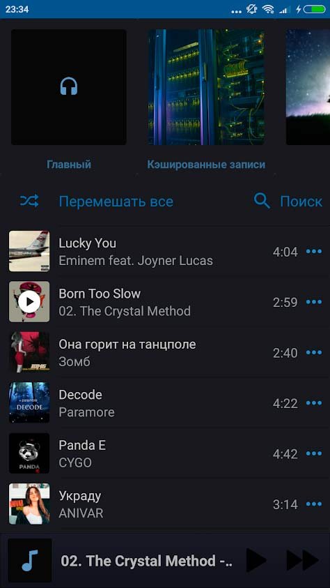 - Возможность сохранять музыку в кэш и слушать ее автономно;