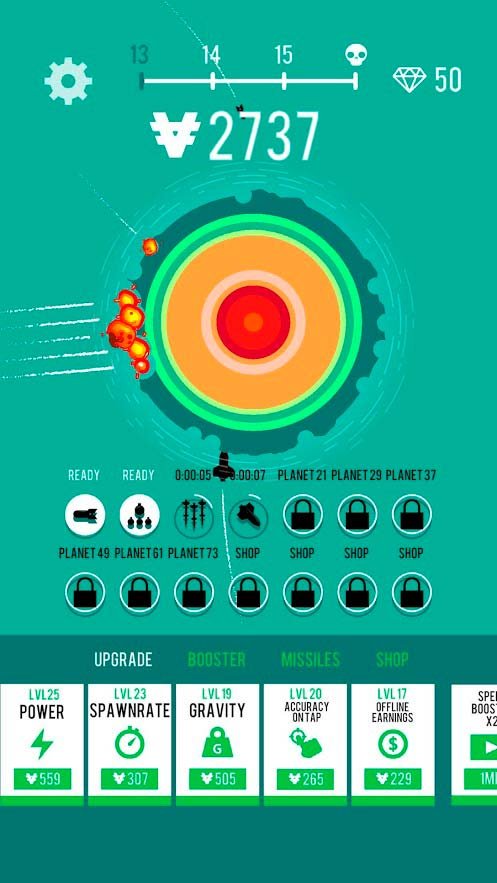 Займитесь путешествием по космической галактике и уничтожайте огромное количество планет, чтобы добиваться наилучших результатов. Обновляйте собственные навыки и суперспособности, чтобы выдвигаться дальше и участвовать в битвах против эпических боссов. В процессе прохождения Planet Bomber! Можно будет открыть огромное количество новых возможностей и бонусных предметов. Используйте их и применяйте для решения сложнейших испытаний. Открывайте новые уровни и достигайте результатов, которые будет очень сложно достичь вашим приятелям. Зарабатывайте кристаллы и за их счет открывайте новые планеты. Это уникализированный процесс решения задач, от которого вы будете полны ощущений.