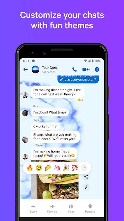 Когда решитесь скачать Messenger на андроид, сможете даже создать групповые чаты и спокойно общаться между собой всей командой. Это особенно удобная функция для коллег или одноклубников, ведь всегда можно будет поделиться яркими впечатлениями и отправить важную информацию одновременно всем в ней заинтересованным лицам. Поставьте для своего сообщества фотографию и место, по которому ее можно будет легко выделить среди остальных и узнать.
