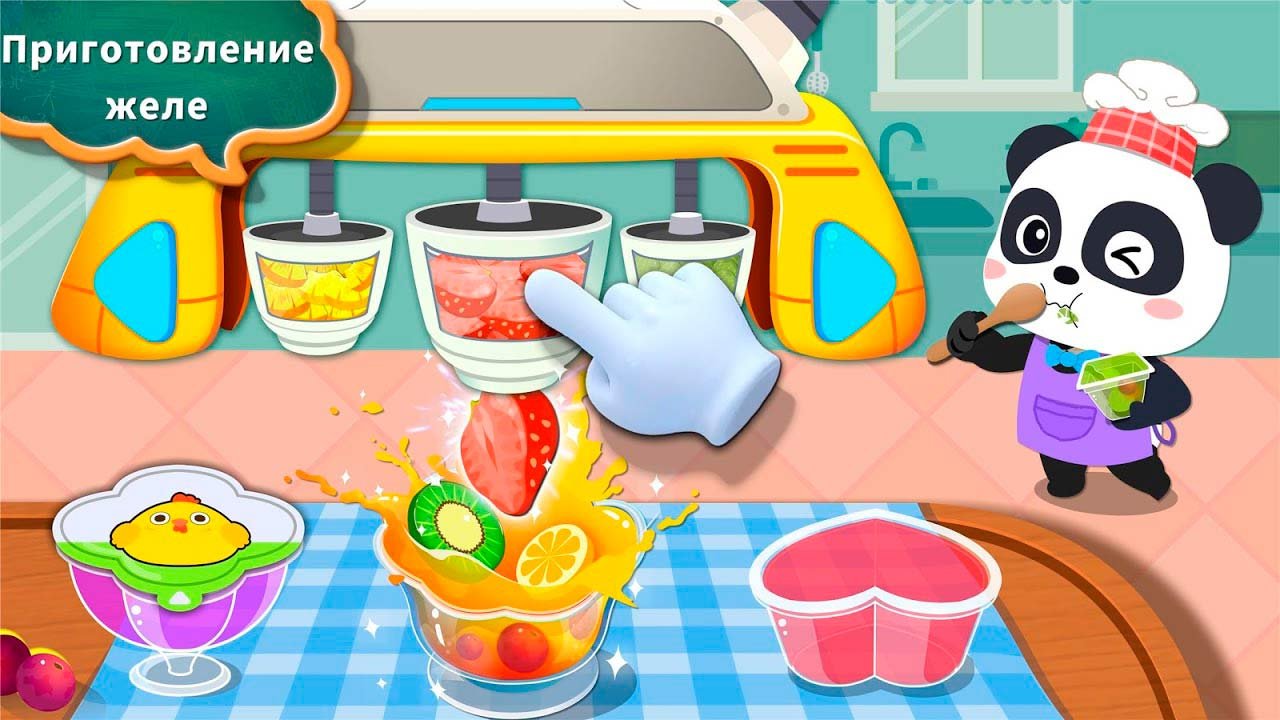 Пандочка открывает свою собственную маленькую кухню и на ней будет полно разнообразных продуктов, среди которых вы легко найдете фрукты, сахар, конфеты или любые другие ингредиенты. Вместе с этим можно будет приготовить очень вкусные блюда и шедевры, чтобы потом поделиться ими с приходящими в гости питомцами. Используйте огромное количество рецептов и применяйте их для завершения. Панда научит детей готовить шоколадки, печеньки или делать вкуснейшие конфеты. Наслаждайтесь простейшим управлением и правилами этого игрового процесса. В Фабрика закусок панды ребенок будет получать удовольствие и радость от участия в дополнительных миссиях. Все это волшебство сделано в очень красивой графике, под художественный стиль мультика.
