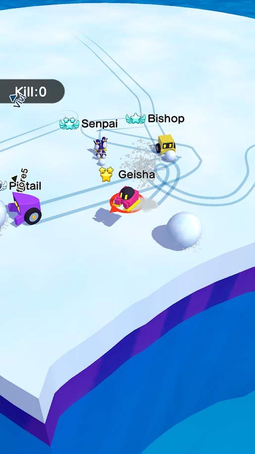 Очень простые правила в этой аркаде, ведь она не потребует никаких сложностей в управлении. Наслаждайтесь увлекательным геймплеем и собирайте весь снег в одну масштабную глыбу, которую после можно будет скатить на своих противников и таким образом победить их. Все это будет очень забавно и невероятно интересно. Главная задача пользователя вывести из игры всех участников и насладиться наградой. Игрок свободно может решить в Snowball.io, что он будет использовать. Это могут быть маленькие шарики, но их будет невероятно много, или одна глыба. Главное чтобы точно попасть по своим оппонентам и уничтожить их всех. Помните, что результаты будут зависеть только от вас, а значит нужно шевелить своими мозгами.