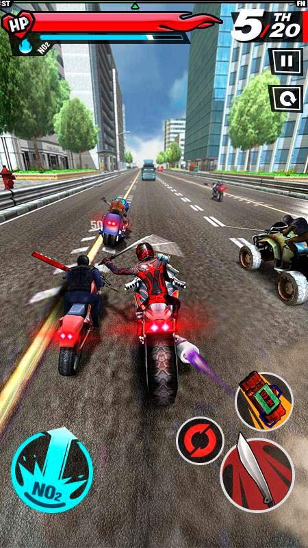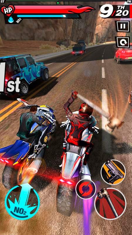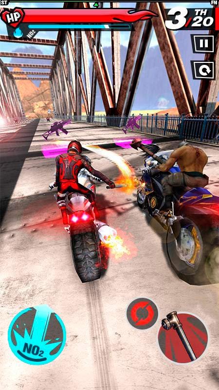 Выбирайте свой собственный мотоцикл, и он станет для вас верным конем. На этом двухколесном транспорте вас ждут путешествия и напряженные гонки, в которых побеждает не быстрый, а сильнейший. Единственные на мобильных гонки, в которых вы можете почувствовать себя королем дорог и сразиться против оппонентов, в режиме реального времени. Исследуйте массу красивых локаций, таких как города, пустыни и трассы. Наслаждайтесь постоянной конкуренцией и берите в руки оружие, чтобы сбивать своих конкурентов. Все участники Бешеные мотоциклисты могут получать бесконечное удовольствие от участия в поездках и опыт, который можно будет использовать в дальнейшем. Наслаждайтесь шикарной трехмерной графикой и атмосферой полного погружения.Особенности игры