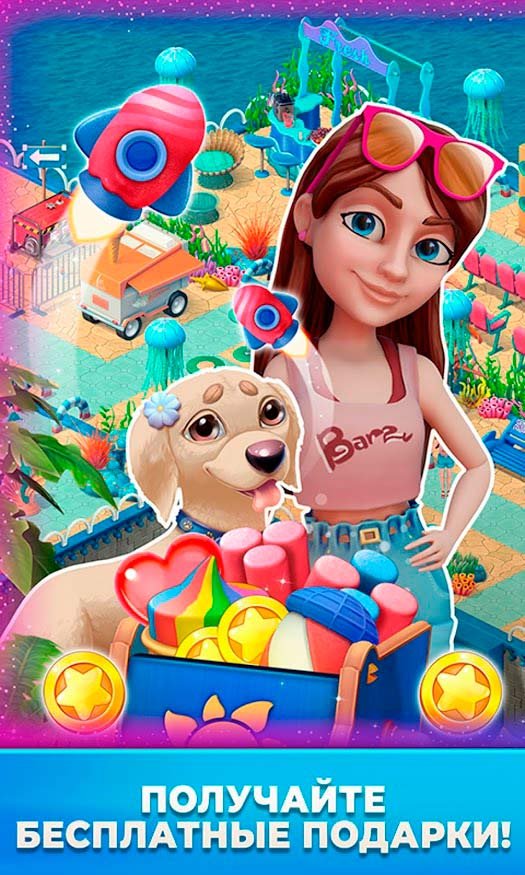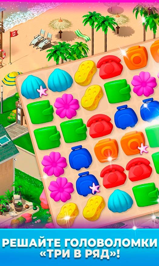Стань руководителем самого крутого и популярного отеля курортного типа прямо на берегу солнечного и собственного пляжа. Погружайтесь в этот увлекательный и интересный сюжет и начните с обустройства территории по собственным предпочтениям. Откройте огромное количество магазинов, баров, украшайте свой красочный сад и просто займитесь интерьером. В Resort Hotel: Bay Story всегда полно работы, которой вы будете заниматься. Все это доступно в очень успокаивающей и интересной графике, а также музыка будет способствовать вашему продвижению. Соберите как можно больше полноценных линий по жанру три в ряд и откройте новые подарки.Особенности игры Resort Hotel: Bay Story