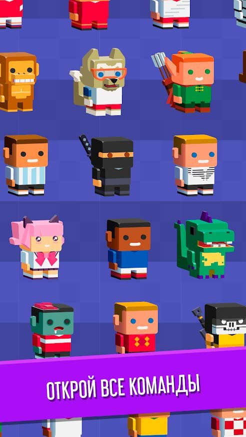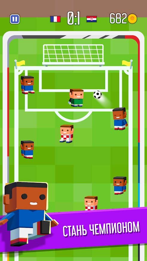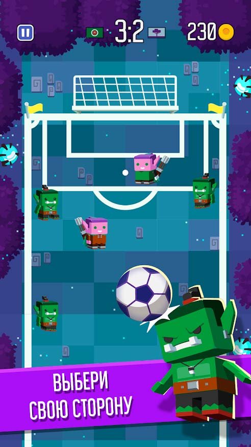 Игроку необходимо собрать собственную команду, в которой могут находиться абсолютно любые существующие расы. Играйте с клубом из динозавров, выбирайте животных в свой состав или людей. Неважно, каким будет ваш состав, главное чтобы он играл очень эффективно и забивал огромное количество голо в ворота оппонента. Приведите собственный клуб к чемпионству или даже выиграйте кубок современного мира. Яркая кубическая графика в объемном формате подарит вам удовольствие и совершенно новые ощущения, ведь в подобном мероприятии вы еще не принимали участия. Scroll Soccer: Arcade Football Game является современным аналогом настольного футбола, который доступен на мобильном устройстве.Особенности игры