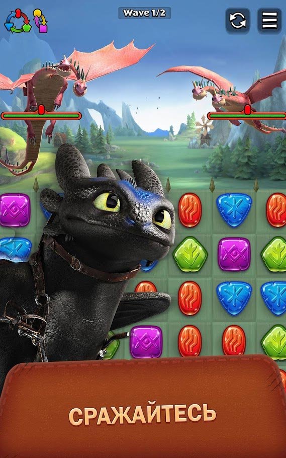 Помогать Беззубику будет очень интересно и весело, особенно в жанре ваших любимых головоломок три в ряд. Исследуйте огромное количество фантастических локаций, на которых сможете помогать всем персонажам из знаменитого мультика. Огибайте остров и соберите в своей коллекции как можно больше драконов. Они помогут вам в главных битвах приключений Dragons: Titan Uprising. Постепенно игрок сможет узнать много интересного по сюжетной линии, разработанной специально для этого процесса. Используйте командные боевые режимы и наслаждайтесь качеством графики, сделанной в стиле оригинального мультика. Чтобы полностью выйти победителем, предстоит иметь у себя в армии более сотни Драконов, а каждый из них обитает на определенной локации, с которой игроку еще только предстоит познакомиться.