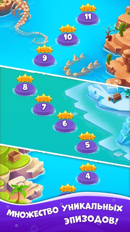 Сокровища Пиратов Новое – это знаменитое приложение для мобильных гаджетов, выхода новой части которого ждали миллионы человек по всему миру. В нем вы сможете с головой погрузиться в захватывающие морские приключения. Классическая механика «три в ряд» остается неизменной уже долгие годы, ведь ее так полюбили фанаты игр подобного жанра. Открывайте для себя новые задания, собирайте выигрышные комбинации и получайте ценные награды.