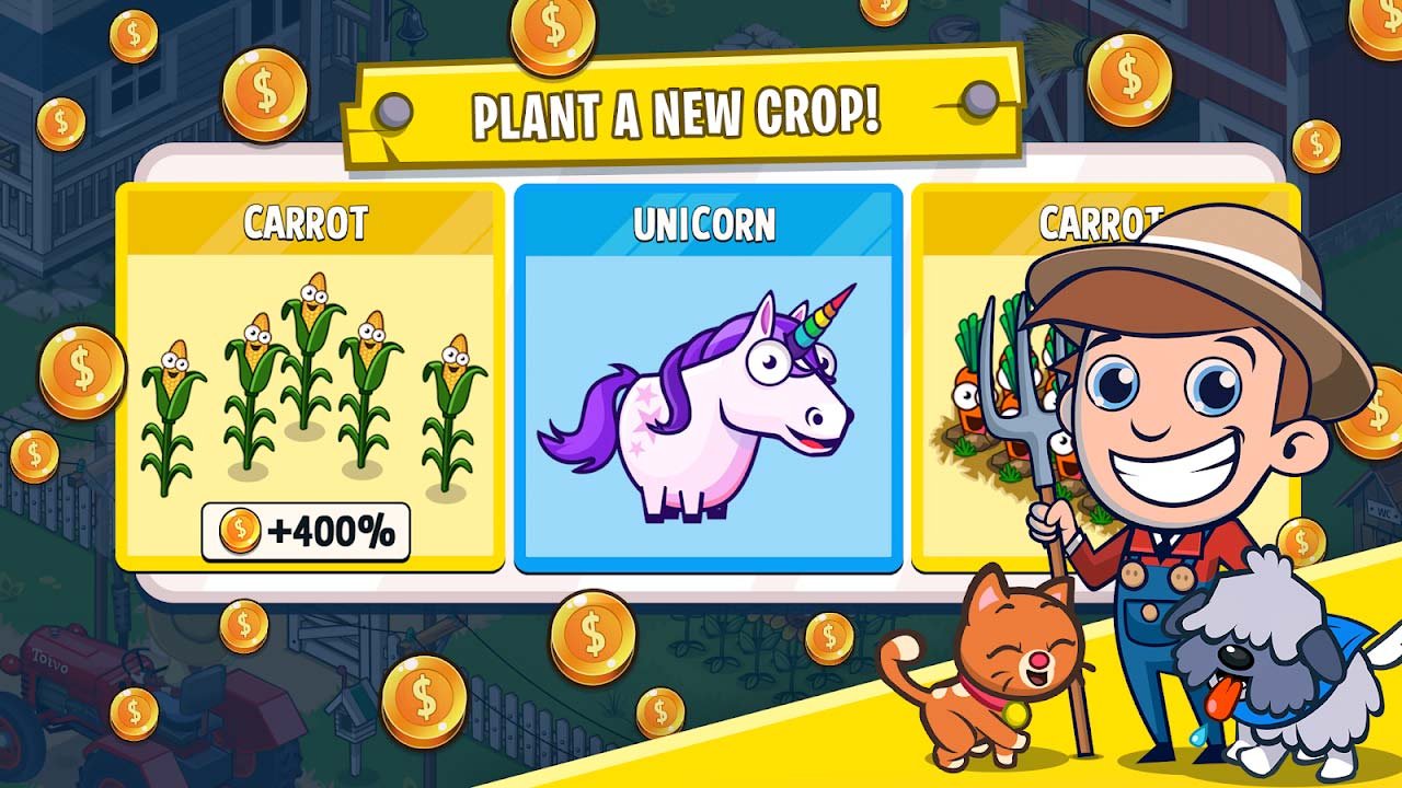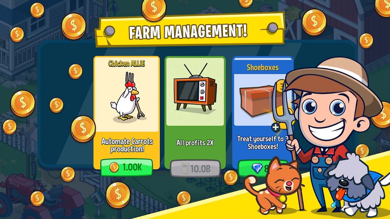 Впервые игроки могут сыграть в фермерский кликер, в котором нужно будет управлять собственным ранчо и тапать по экрану, получая очень много прибыли. Наслаждайтесь инвестициями в разные направления и получайте доступ к абсолютно новым предметам. Вас ждет мир полный удивительных моментов и удивительных функций. Просто получайте доступ к Idle Farming Empire и начните совершенствовать владения. Игрокам нужно будет создать самую крутую империю и зарабатывать в ней миллионы ежедневно. Изначально придется очень много кликать, чтобы построить поля, здания, нанять трактора и работников. После вашего улучшения появится шанс просто автоматически снимать прибыль, даже не посещая игру. Есть куча разных культур и живности, чтобы увеличивать доход и собирать с них продукты. Управляйте жизнью простого человека в деревне, которому предстоит стать миллионером.