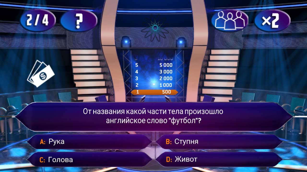 Наверняка вы тоже мечтали стать миллионером и принять участие в одноименном шоу. Теперь же такая возможность действительно появилась, и вы можете подключиться к самому крутому телевизионному шоу Кто хочет стать миллионером. Отвечайте на огромное количество вопросов и продвигайтесь как можно дальше. Отвечайте на очень сложные вопросы и продолжайте дальше. Сыграйте в лучшем интеллектуальном Миллионер 2019 и почувствуйте себя звездой. В этом приложении собрано огромное количество вопросов из самых разнообразных категорий и когда будет совсем трудно, воспользуйся подсказками, точно такими же, как в реальной передаче. Все это будет происходить под оригинальный саундтрек. Это обновленная и свежая игрушка викторина.