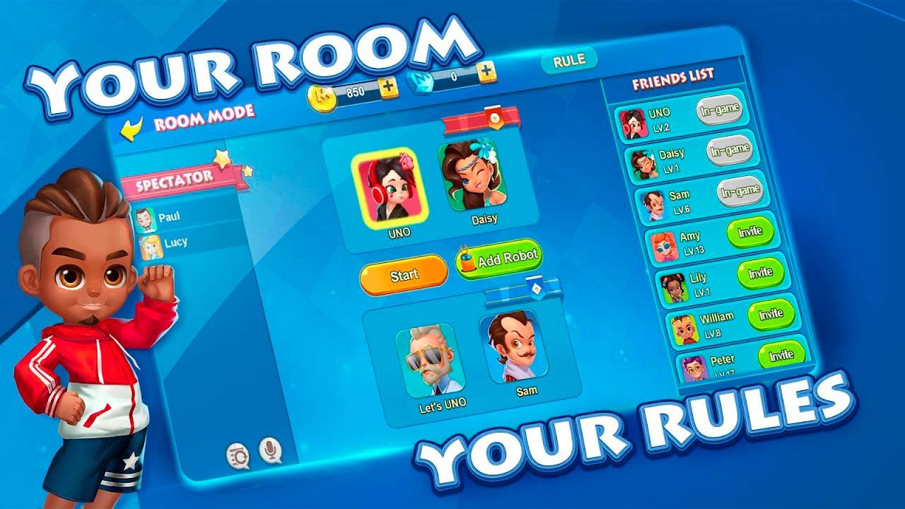 Сыграйте в первую в списке карточную игру, способную принеси массу удовольствия и наслаждения от прохождения чемпионатов, турниров и других соревнований. Попытайтесь научиться многому и придумайте лучшую стратегию, которая поможет вам получить превосходство над оппонентами. Есть много всего, что поможет в продвижении по этому классическому миру. Откройте совершенно новые возможности в UNO! И конкурируйте с другими пользователями по всему миру. Выбирайте абсолютно любые правила, которые наиболее интересны для вас. Каждый поединок проходит в режиме реального времени. Продвигайтесь в таблице лидеров и попытайтесь стать лучшим, среди остальных игроков с разных концов мира.