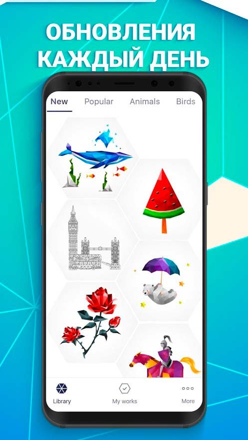 Свое свободное время нужно проводить очень весело и интересно, а значит, вам будет полезной такая увлекательная творческая игра. POLYGON: Раскраска по цифрам идеально подойдет для пользователей абсолютно любого возраста и пола. Раскрашивайте разнообразные категории рисунков из любых категорий и используйте номера. Таким образом, вы сможете очень быстро снять напряжение и расслабитесь. Создавайте самые крутые шедевры и делитесь впечатлениями со своими друзьями. Есть множество интересных категорий, таких как звери, пейзажи, натюрморты и еще много всего другого. Поэтому миллионы пользователей даже не сомневаются в выборе. Если приближаются праздники, то вам откроется доступ к новеньким квестам.