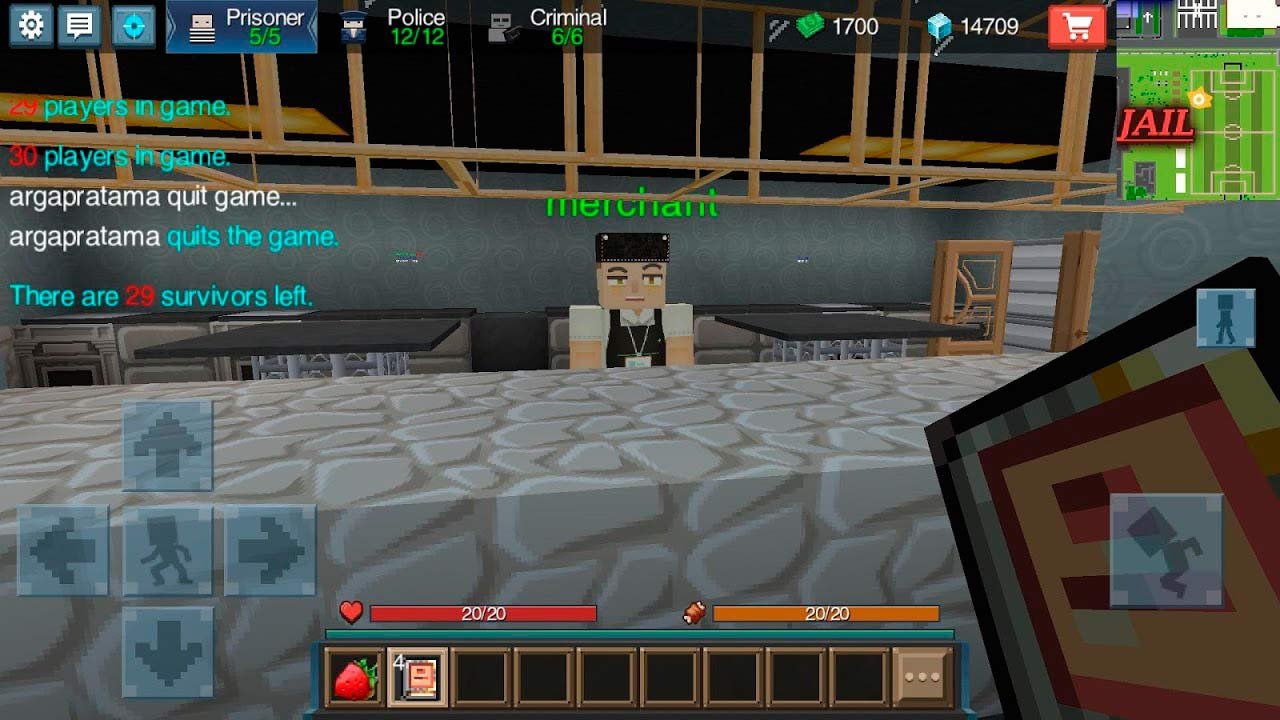 Наслаждайтесь одной из самых популярных и интересных игрушек в мире полном блоков и свободы творчества. Главный герой окажется в одном из городов и сможет выбрать для себя абсолютно любую роль. Существует только две стороны, мир полный криминала или правоохранительные органы. Став копом вы сможете путешествовать по городу и искать преступников, которых можно будет посадить за решетку. Следите за заключенными, но не убивайте их, потому что жестокость не нужна этому миру. В другом случае игроки из Jail Break: Cops Vs Robbers могут встать на сторону криминала и сыграть за заключенного. В таком случае вам необходимо будет грабить, пытаться совершить побег и совершать другие нарушения порядка в местности. В общем, очень много интересного ждет игроков в мире блоков.