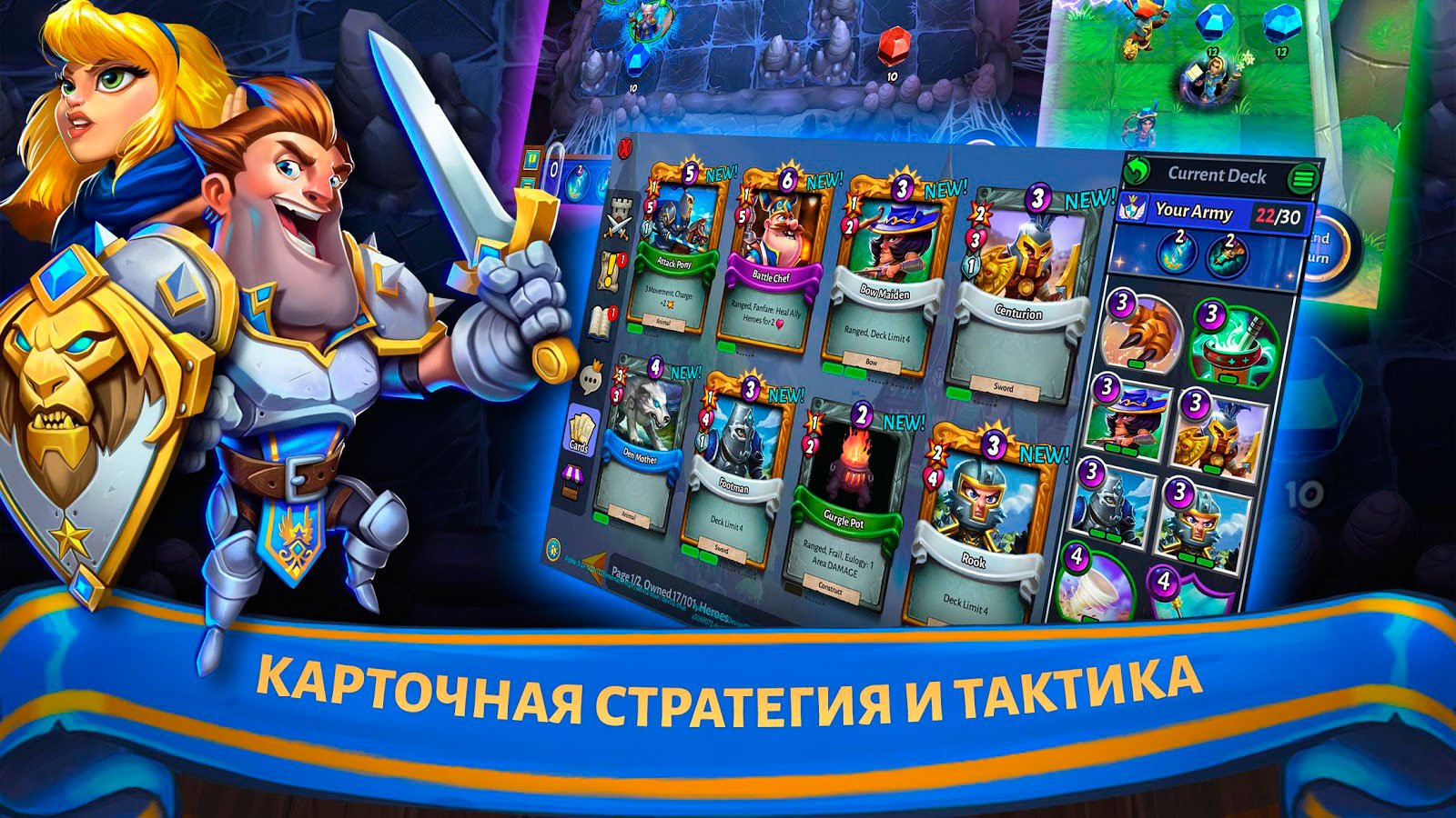 Очень эффектно выглядят битвы в режиме реального времени, но не менее интересна компания автономного режима. Игра в онлайн игре можно будет встречаться одновременно с несколькими участниками игрового процесса на одной арене, и принять участие в пошаговых битвах. Исследуйте огромный фантастический мир и выбирайте свой путь к победе. Каждый день и праздники проходят уникальные события, в которых можно будет выиграть легендарную карту, а о такой мечтают миллионы игроков. Постоянно экспериментируйте с комбинациями и выбирайте свой могущественный путь до вершины. Вас ждет огромное число уникальных фракций и сотни героев со своими способностями.Информация об игре