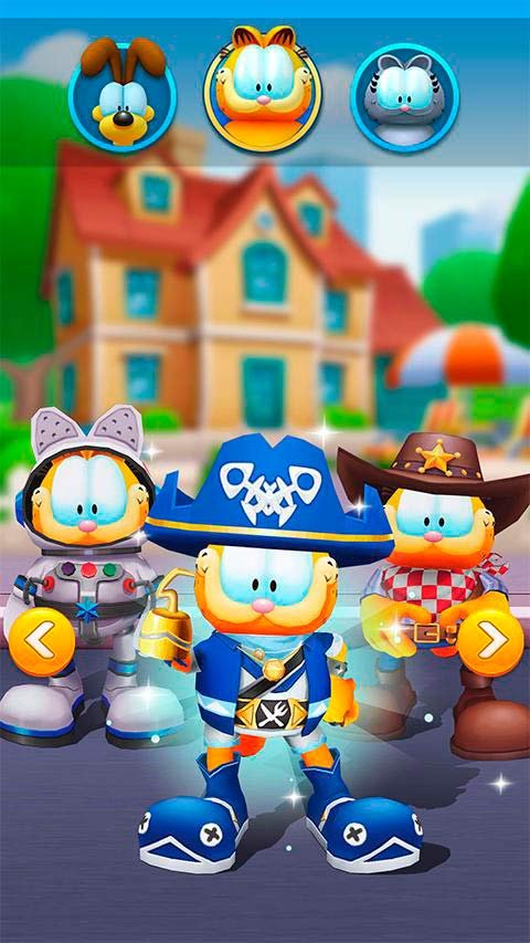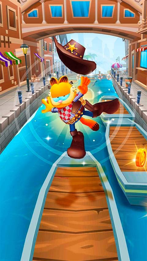 Поиграйте за своего любимого персонажа Гарфилда прямо сейчас и наслаждайтесь путешествием по очень волшебным и интересным местам. Вместе с вами участвовать в этом раннере будут друзья кота, Нермаль и Оди. Он в любой момент помогут вам перехитрить и обойти коварного врага Гарри. Нужно отправиться в погоню за ним прямо сейчас и обойти огромное количество препятствий. На пути вам будут мешаться самые разнообразные предметы, в виде машин и других объектов. их нужно будет обходить, чтобы как можно быстрее добраться до цели. По пути прохождения Garfield Rush нужно собирать монетки, а уже на них приобретать новые костюмы для своего питомца. Если потребуется помощь на сложных уровнях, тогда можно пользоваться бонусами в виде хот-догов или лазаньи, усиливающих скорость и способности героя.