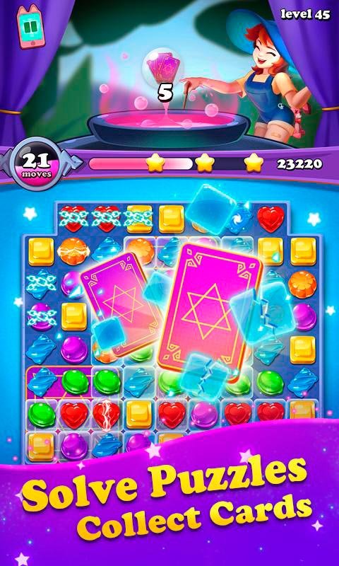Приключения три в ряд подарят вам одно удовольствие, ведь они помогают расслабиться и получить удовольствие. Собирайте несколько драгоценных камней воедино и путешествуйте по масштабному миру. Наслаждайтесь высоким качеством игрового процесса и визуальными эффектами от бонусов. Прокачайте собственные навыки и способности, чтобы преодолеть испытания в более чем сотню уровней. В этом приключении очень много волшебства и магии, которая помогает освоиться и поднять себе настроение. Собирайте в процессе как можно больше золота и станьте настоящим мастером магического действия. Откройте замок в Gems Witch - Jewel Crush Adventure и постройте целый город, благодаря полученным навыкам и опыту.Особенности игры Gems Witch - Jewel Crush Adventure