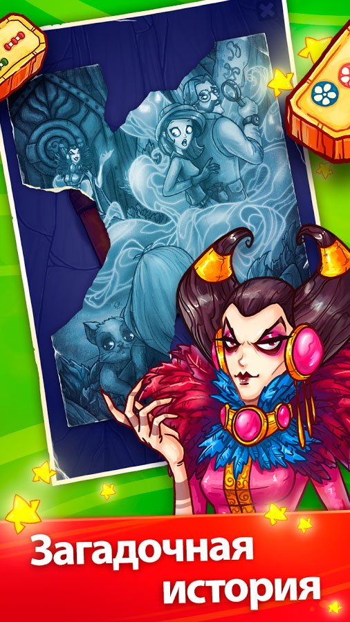 Как только решите скачать Маджонг: Поиск Сокровищ на андроид начинайте заниматься решением множества увлекательных головоломок и сюжетных переплетений. Занимайтесь сбором сокровищ и богатств, чтобы одолеть главного Босса. Ею выступает злобная ведьма по имени Эрис, и они будет постоянно пытаться помешать вашему идеальному пути к прохождению игрового процесса. Постарайтесь решить главную тайну этого фантастического мира и наконец, помогите Софи разгадать загадку, которая даст ответ о местонахождении ее родителей.