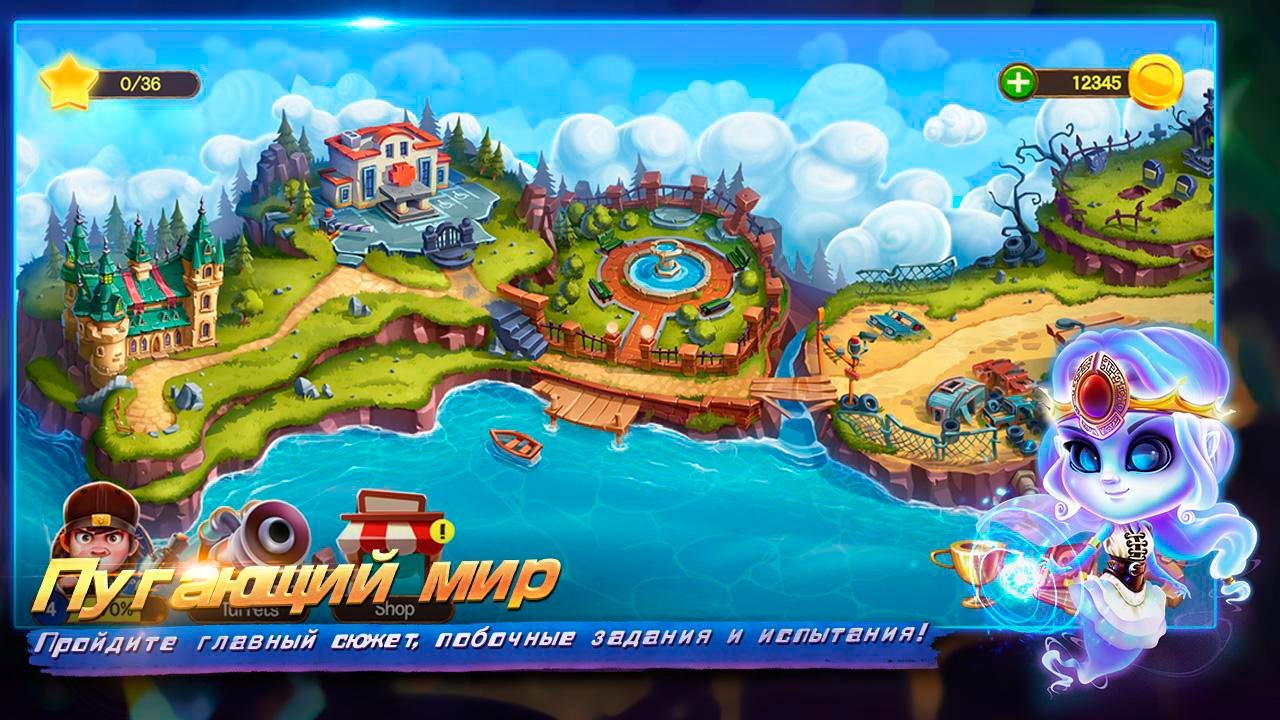 Игрокам предстоит отправиться в совершенно необычный город, наполненный монстрами и призраки, которых очень много. Как оказалось, эти существа являются очень злобными и поэтому они начинают нападать на базу главного героя. Попытайтесь противостоять этим силам и вооружайте свою оборону. Расставьте по периметрам как можно больше башен оборонительного значения и улучшайте башню. Это поможет отбиваться от атак противников и также можно позвать легендарного героя на поединок, чтобы он разобрался с боссами приведений. Воспользуйтесь большим разнообразием предметов, вооружения, башен и персонажей, чтобы иметь превосходство над противниками. В процессе продвижения по миру Защита города-призрака нужно будет победить около трех десятков крутых боссов и сделать это будет нереально трудно.Особенности игры