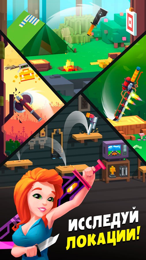 Метать тут можно не только ножи, но и топоры, мечи и некоторое другое уникальное оружие. Реалистичный физический движок позволяет наслаждаться игровым процессом раз от раза, поэтому отрываться от игры никак не хочется. Большое количество разнообразных уровней сделают из вас мастера в весьма короткий срок, открывая все новые возможности в этом удивительном приложении.
