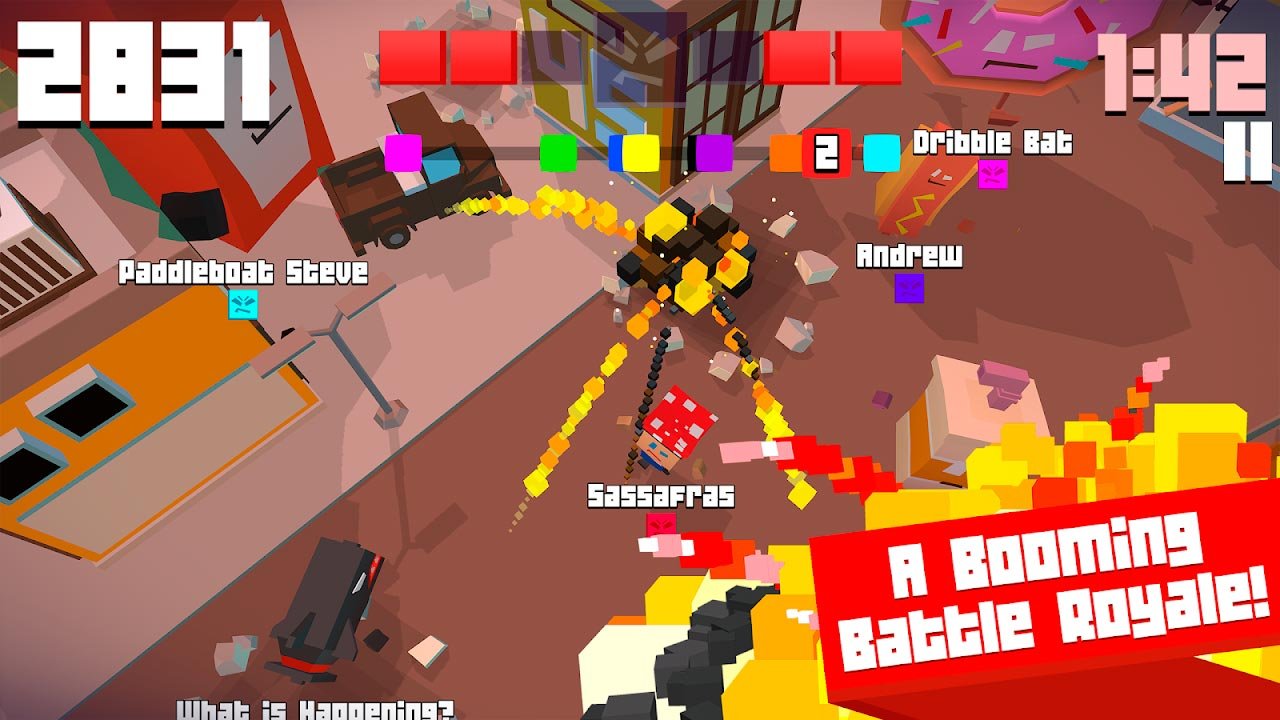 Простому обывателю будет сложно понять, что начнет происходить на экране его смартфона сразу после первого запуска этого игрового процесса. Попробуйте получить наслаждение от участие в быстрой и разрушительной аркаде. Игрок может принять совершенно любой облик и станет тем, кем захочет. Участвуйте в безумных битвах этого масштабного мира и открывайте перед собой мир полный исследований. Городок под названием Бум готов предоставить пользователям очень большое пространство для исследований и путешествий. Повсюду будут встречаться враги, с которыми битвы будут максимально интересными и напряженными. Поэтому как следует подготовьтесь к такой войне и следуйте собственной уникальной стратегий. В Go Boom! Обязательно нужно попробовать режим онлайн выживания.Особенности игры Go Boom!