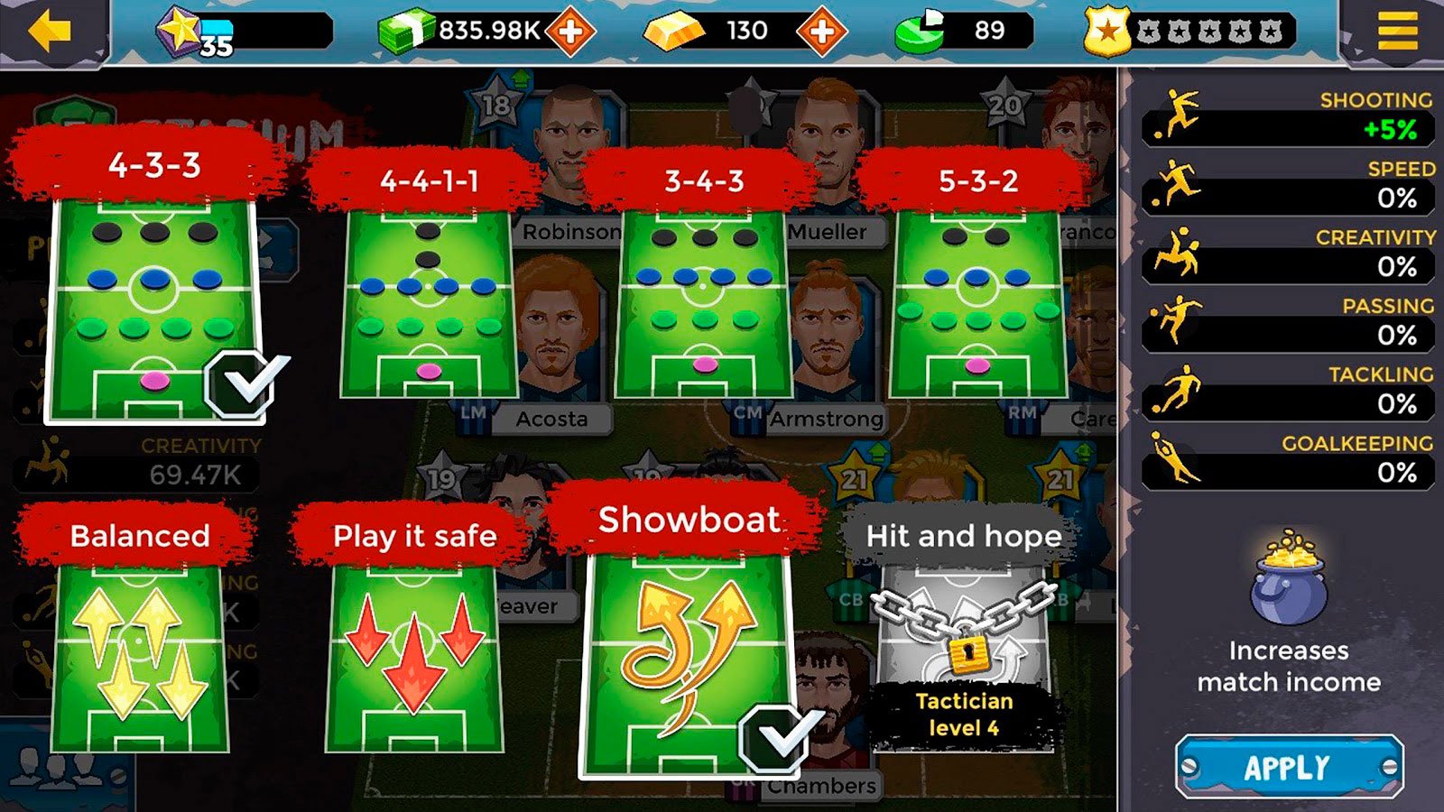 Обязательно попробуйте скачать Underworld Football Manage на андроид и постарайтесь поднять этот город в онлайн менеджере. Развивайте все имеющиеся здесь здания и продвигайте к успеху команду по футболу. Проводите качественные трансферы и подписывайте огромное количество игроков, которые обладают высоким мастерством и профессионализмом. Используйте иногда нечестные приемы и даже предлагайте взятку, чтобы уничтожить своего соперника. Вы должны будете узнавать результат о своей победе еще до начала матча и поможет в этом подкуп. Это единственный во всем мире менеджер по футболу, в котором можно устраивать договорные матчи и использовать хитрые способы.Самый грязный футбол